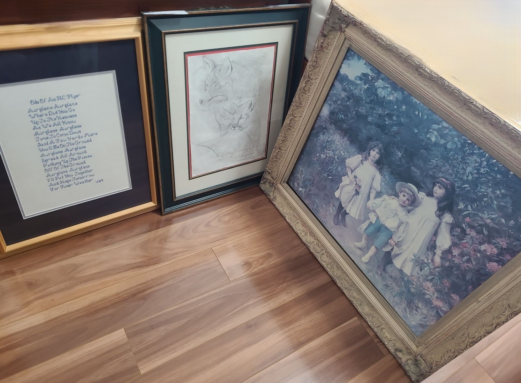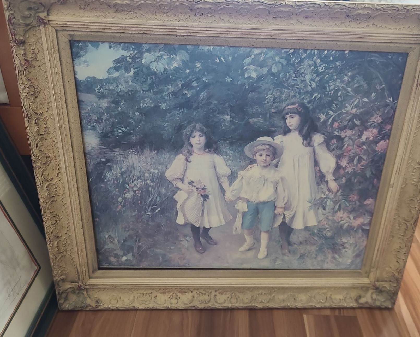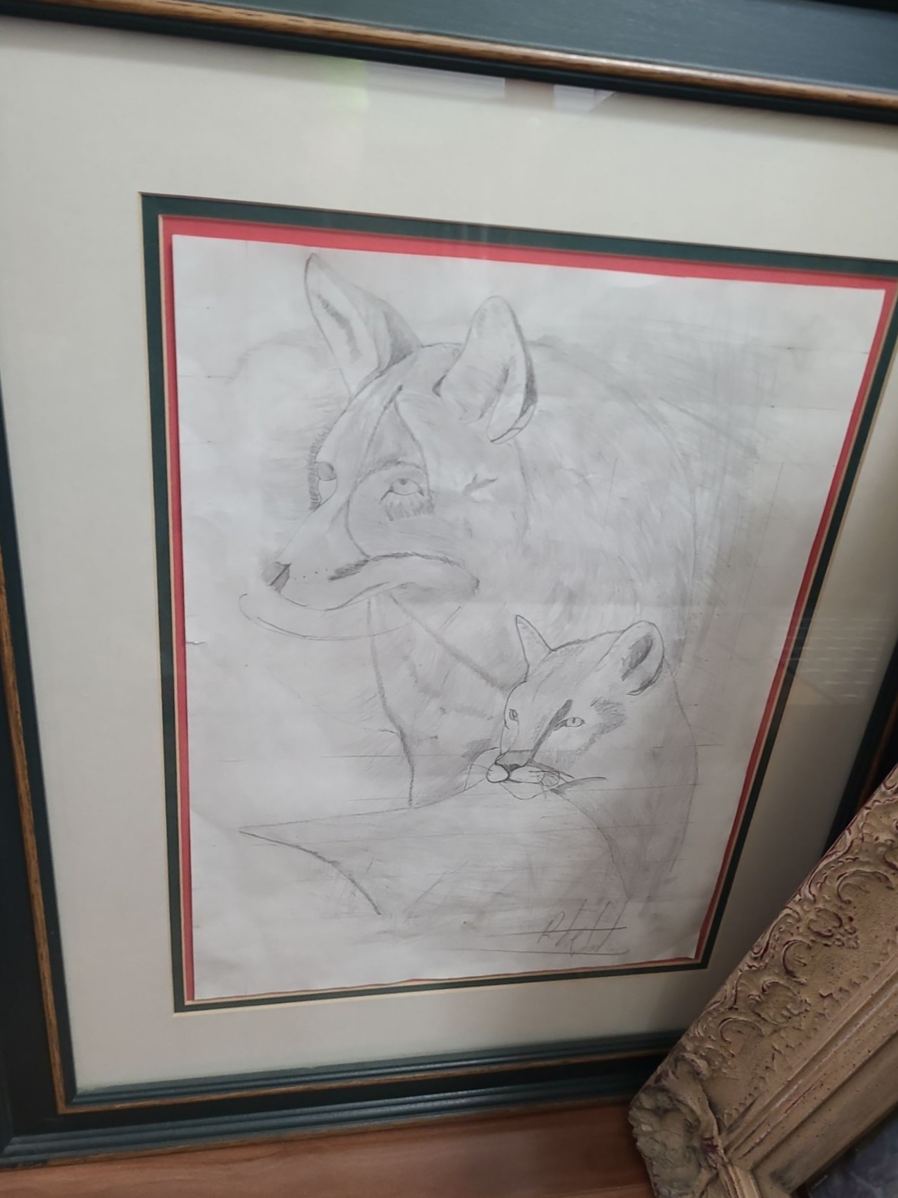 Pencil Drawing 1/2 w 23 1/2 h. Also incl Harcourt Reproduction Framed Painting 30 w 26 h