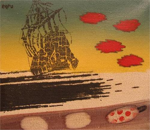Oded Feingersh, B. 1938, A Boat in the Sea, Oil on canvas, 19x22 cm, Signed., , , , ,
