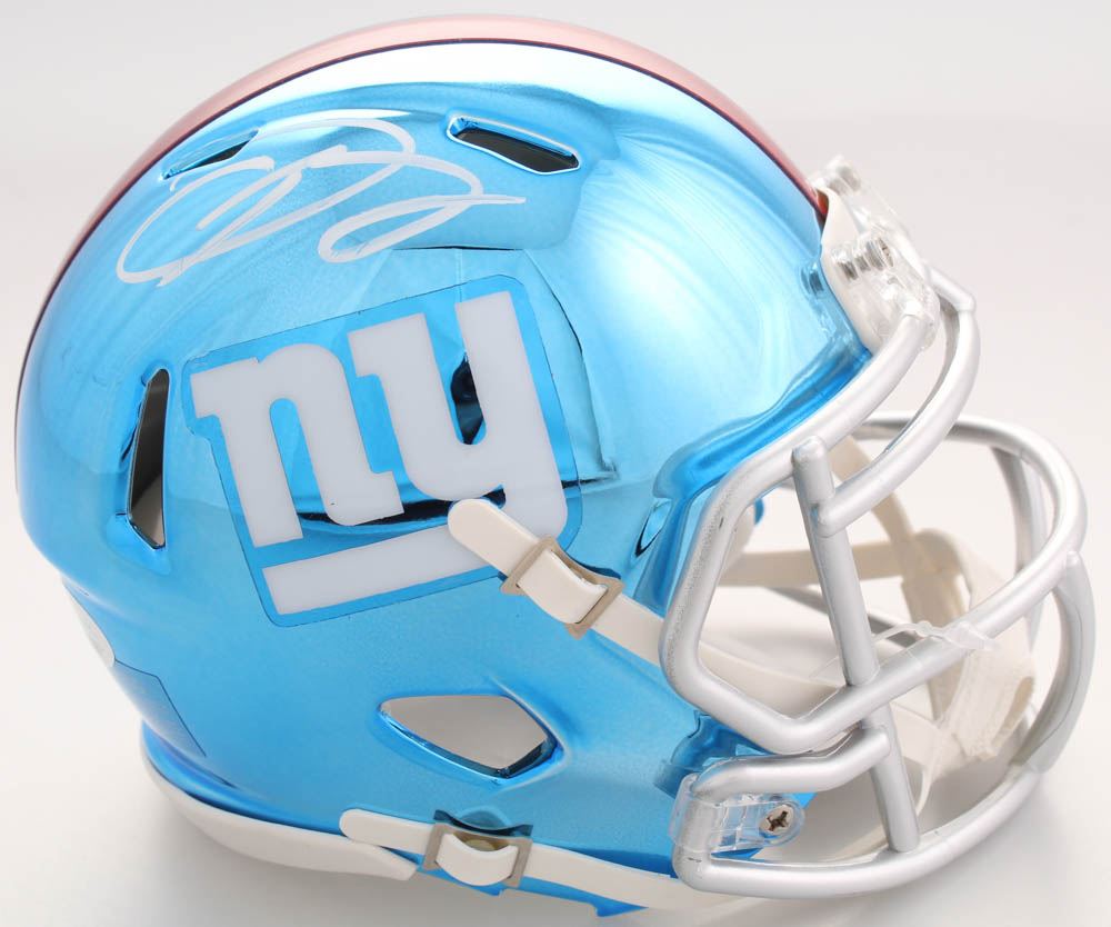 Riddell New York Giants Chrome Speed mini helmet. Hand-signed in white paint pen by Odell Beckham.