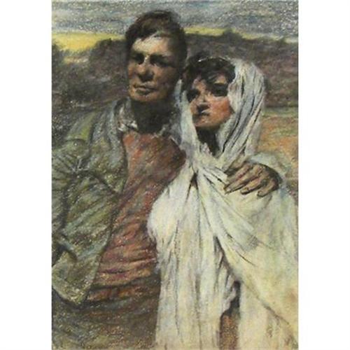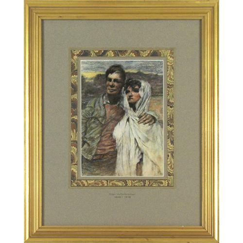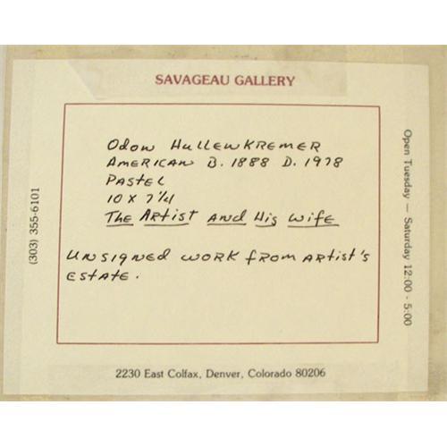 Odon Hullenkremer (1888-1978) Pastel, "The Artist & His Wife", sight size 9 3/4" x 6 7/8", unsigned - Savageau Gallery tag verso stating this is from the artist's estate