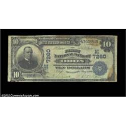 Odon, IN - $10 1902 Date Back Fr. 616 The First NB Ch. # (M)7260A very rare large size note, with just two such examples recorded in the Kelly census. Our records show that it has been six years since even a small example from here has been offered to collectors at public sale. Pen signed Fine, with a bit of light staining, which detracts little from the appeal of this rare note. Important notice: We expect to be auctioning lots at the rate of 200-250 per hour. Sometimes eBay Premier live bid software cannot keep up with that pace, so we strongly recommend that you place a realistic proxy bid now as insurance to avoid disappointment. Also please note that all Heritage/CAA lots purchased through eBay Premier carry a 20% Buyer's Premium. Please make sure you read the Terms and Conditions.
