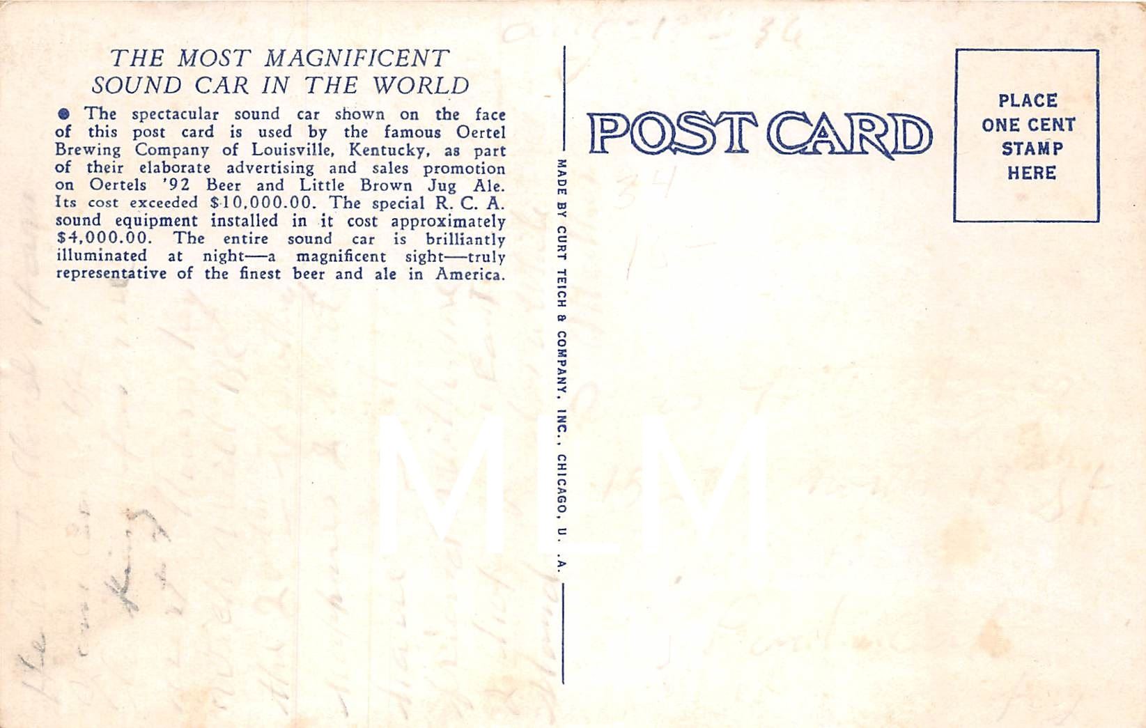Oertel Brewing Company "Most Magnificient Sound Car in the World" Advertising Beer PC