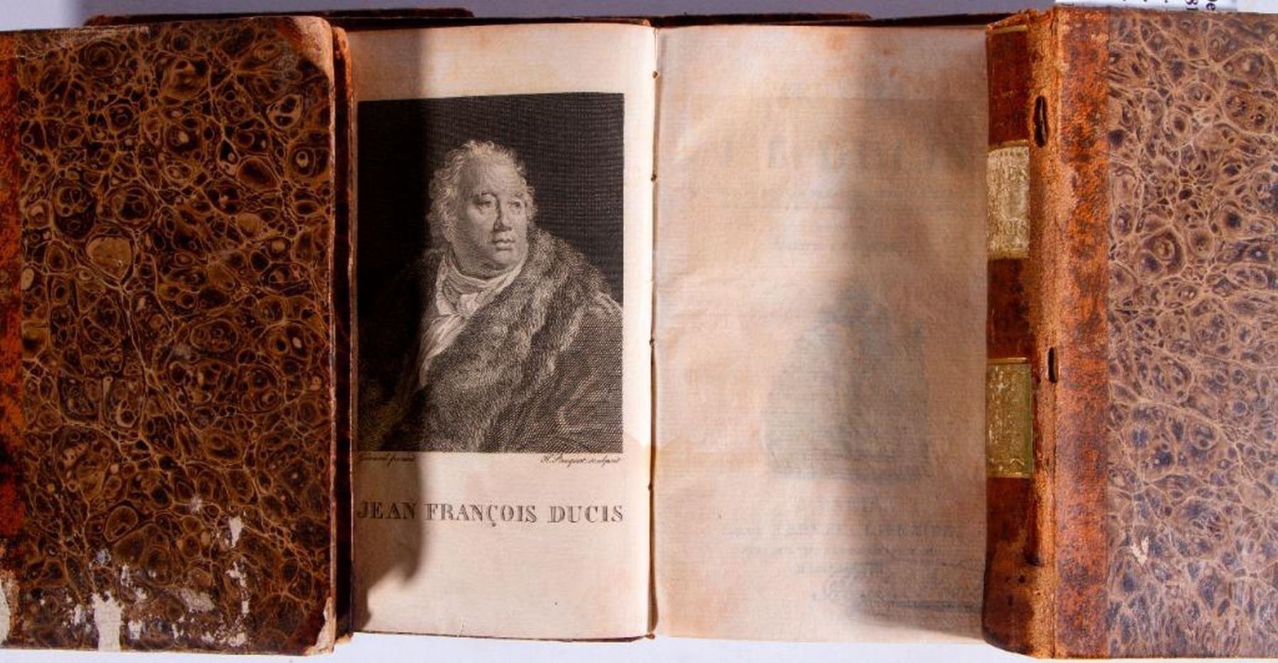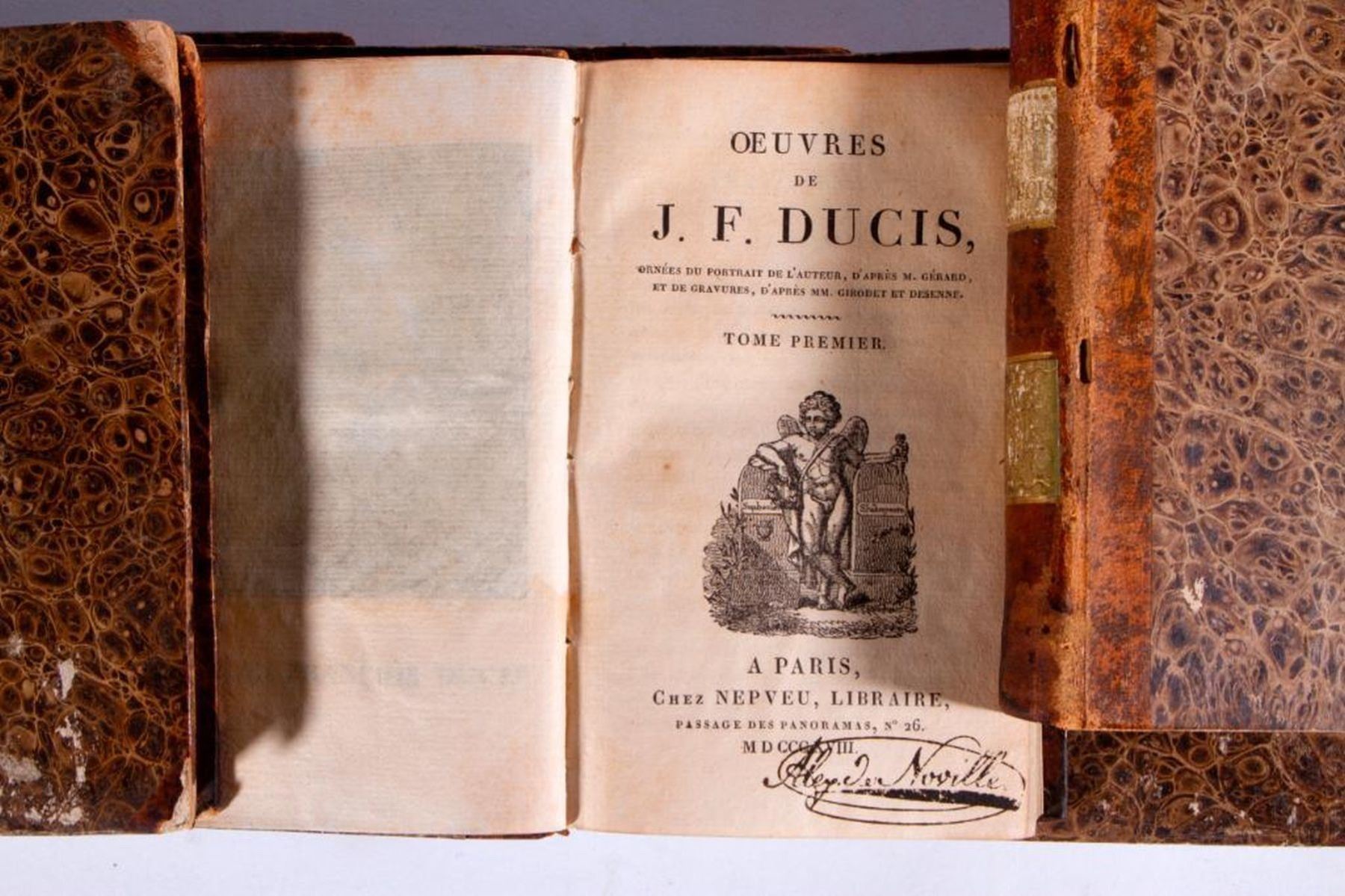 Title: Oeuvres de J.F. Ducis Author: J.F. Ducis Published: Chez Nepveu, Paris, 1818 Description: Hardcover. Quarter leather bound. 6 volumes. French edition. Condition: Fair to good condition. Boards are chipped, rubbed, and missing pieces.
