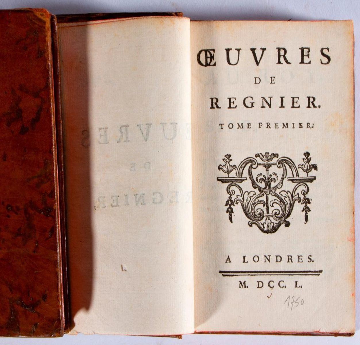 Title: Oeuvres de Regnier Author: Regnier Published: Londres, 1750 Description: Hardcover. Leather bound. Two volumes. French editions. Condition: Good condition.