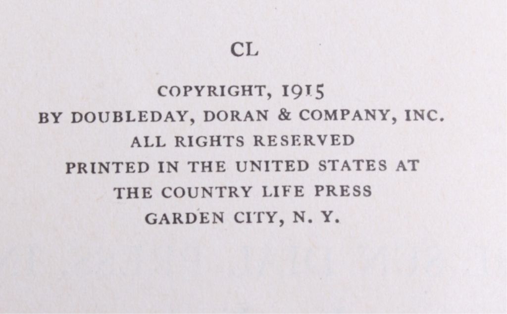 This is a first edition copy of the widely collected book, "Of Human Bondage" by W. Somerset Maugham printed in 1915. This is copyrighted by Doubleday, Doran & Company, Inc. printed in the US at The Country Life Press and published by The Sun Dial Press, Inc. Overall good condition, but has seen wear.