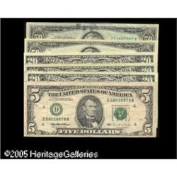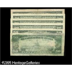 <B>Off Color Federal Reserve Bank Seals.</B></I>This group of six Federal Reserve Notes all display District seals not in the customary deep black color, but instead in shades ranging from a weaker black to green.<BR>$5 1995 FRN Cleveland Fine<BR>$20 1990 FRN New York (3) Fine-Very Fine<BR>$50 1990 FRN Chicago Very Fine; $50 1990 FRN Kansas City Very Fine.<BR>We note that the legitimacy and genuineness of these items have been the subject of considerable debate and controversy within the numismatic fraternity and leave any determination to the final judgment of our bidders without offering any formal opinion of our own. Face value is $165.<BR><I>Please examine carefully as there will be no return of these items for any reason.</B></I><BR> 6 notes Lot:15401