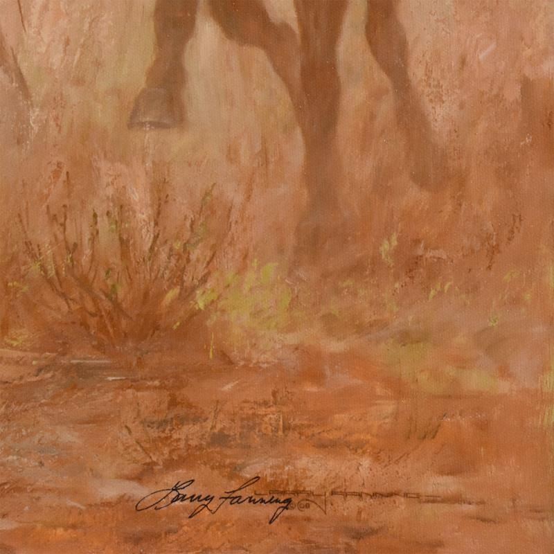 "Off To See The Elephant" is a limited edition giclee on canvas by Larry Fanning (1938-2014), AP numbered and hand signed by the artist. Includes Letter of Authenticity. Measures approx. 23.5" x 23.5" (image).