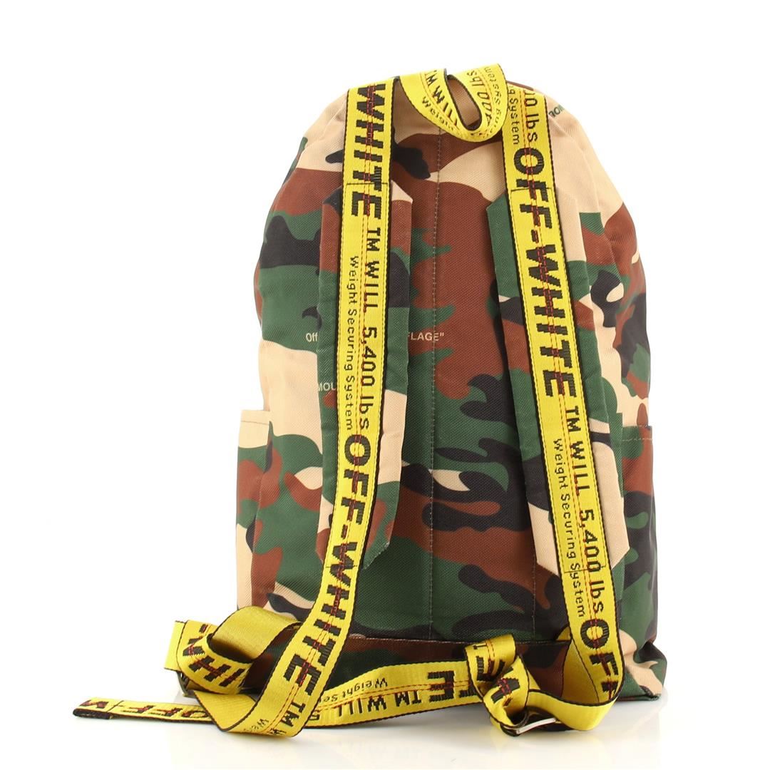 One Off White Double Front Pocket Backpack Printed Canvas. Item is sold AS-IS. All available information is listed in the description and shown in the photo. Off White Double Front Pocket Backpack Printed Canvas. Stain on front pocket, wear on exterior edges, straps and in interior. Discoloration on base and pocket corners, pilling in interior, scratches and tarnish on hardware. 78848