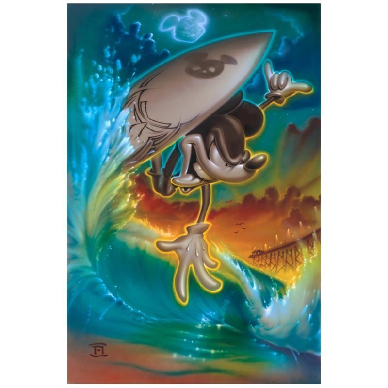 "Off the Lip" is a limited edition giclee on canvas, numbered and hand signed by Noah. This piece is licensed by Disney Fine Art. This piece has a 2" border and may be gallery wrapped or framed based on preference. Includes Certificate of Authenticity! Measures approx. 18" x 27" (image).