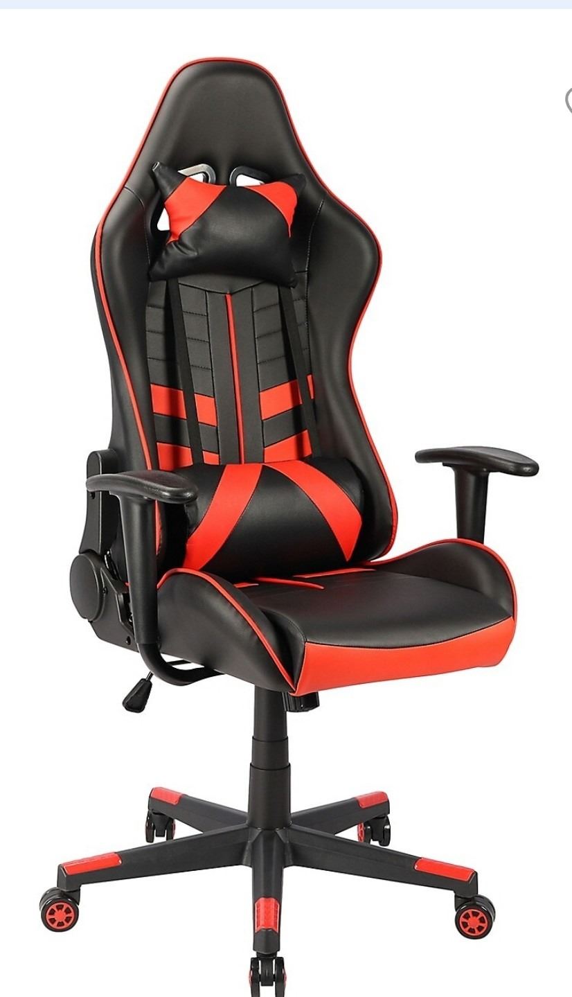 Worldwide Home, Modern Faux Leather/Metal Office Chair, Gas Lift Seat, Full Swivel, Seat Height 18.5" To 22.5", Red/Black, Open Box, Like New Condition