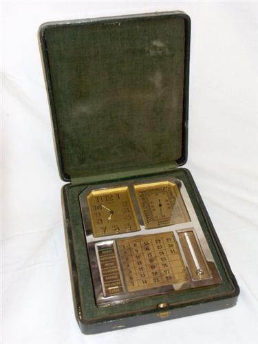 Montre de bureau 8 jours avec baromètre, thermomètre et calendrier, signée L BADER GENEVE, dans coffret d'origine