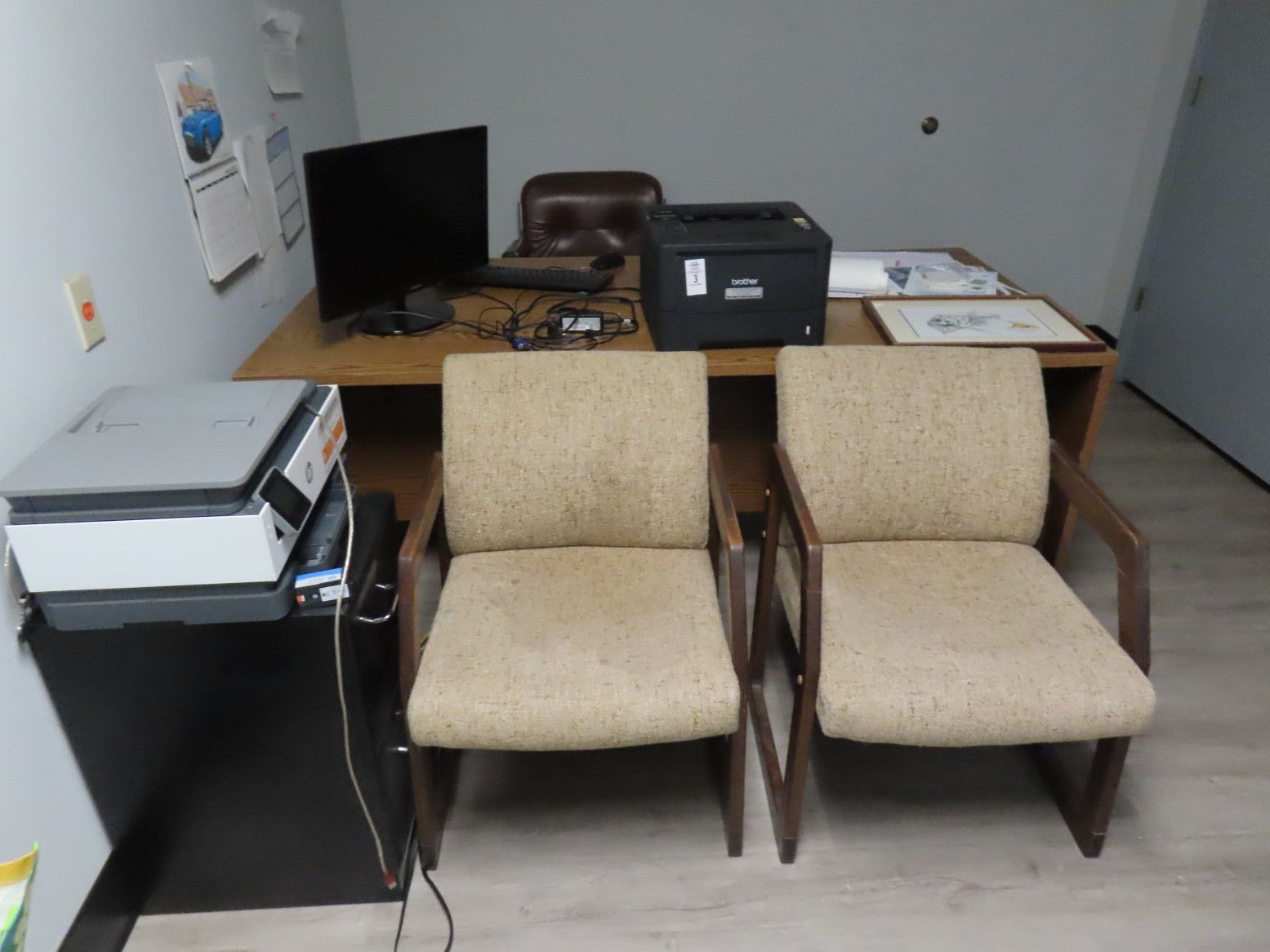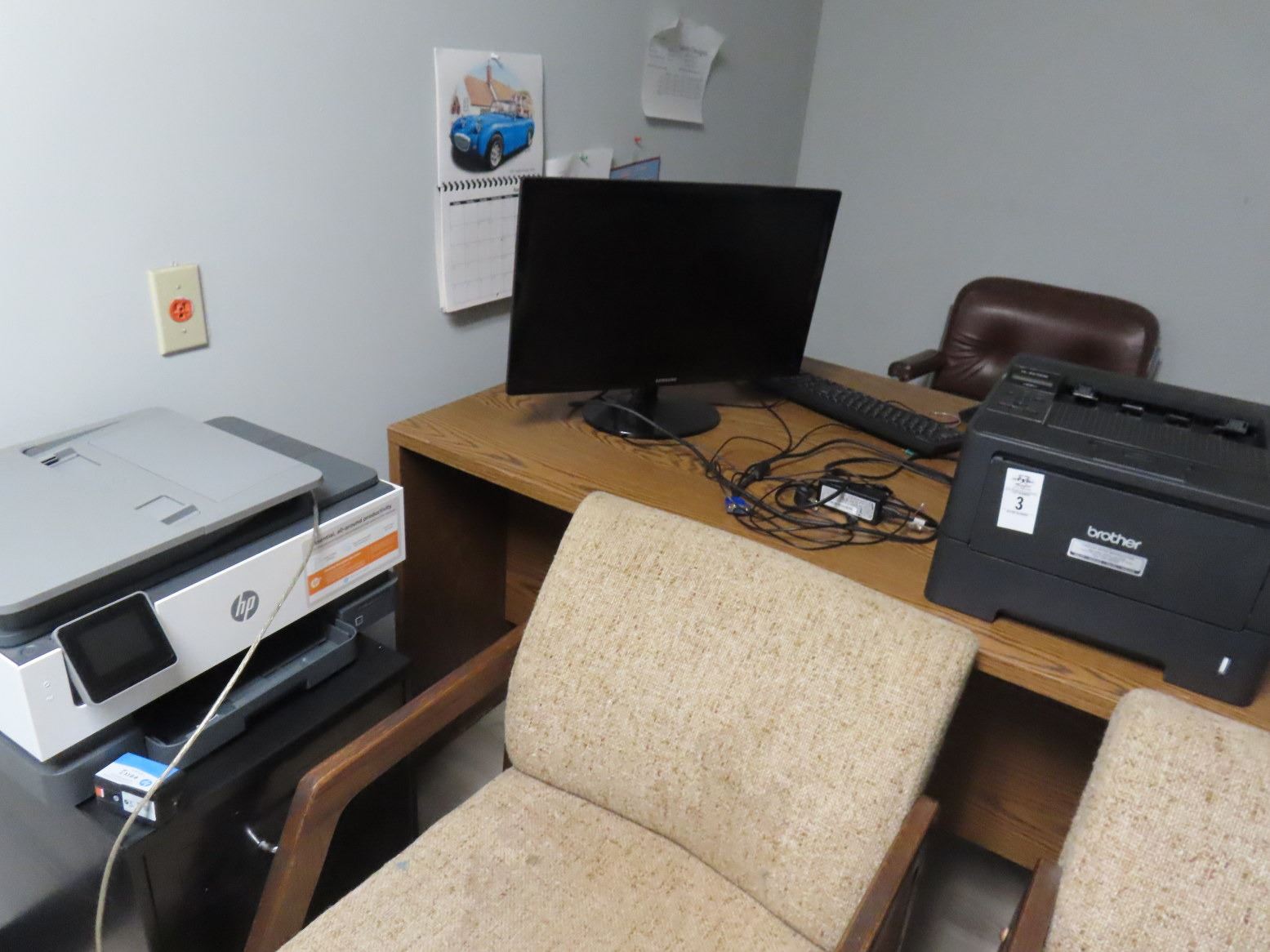 Office Contents w/Brother Printer, HP MFC, Desk Chair, Wardrobe, Bookcase