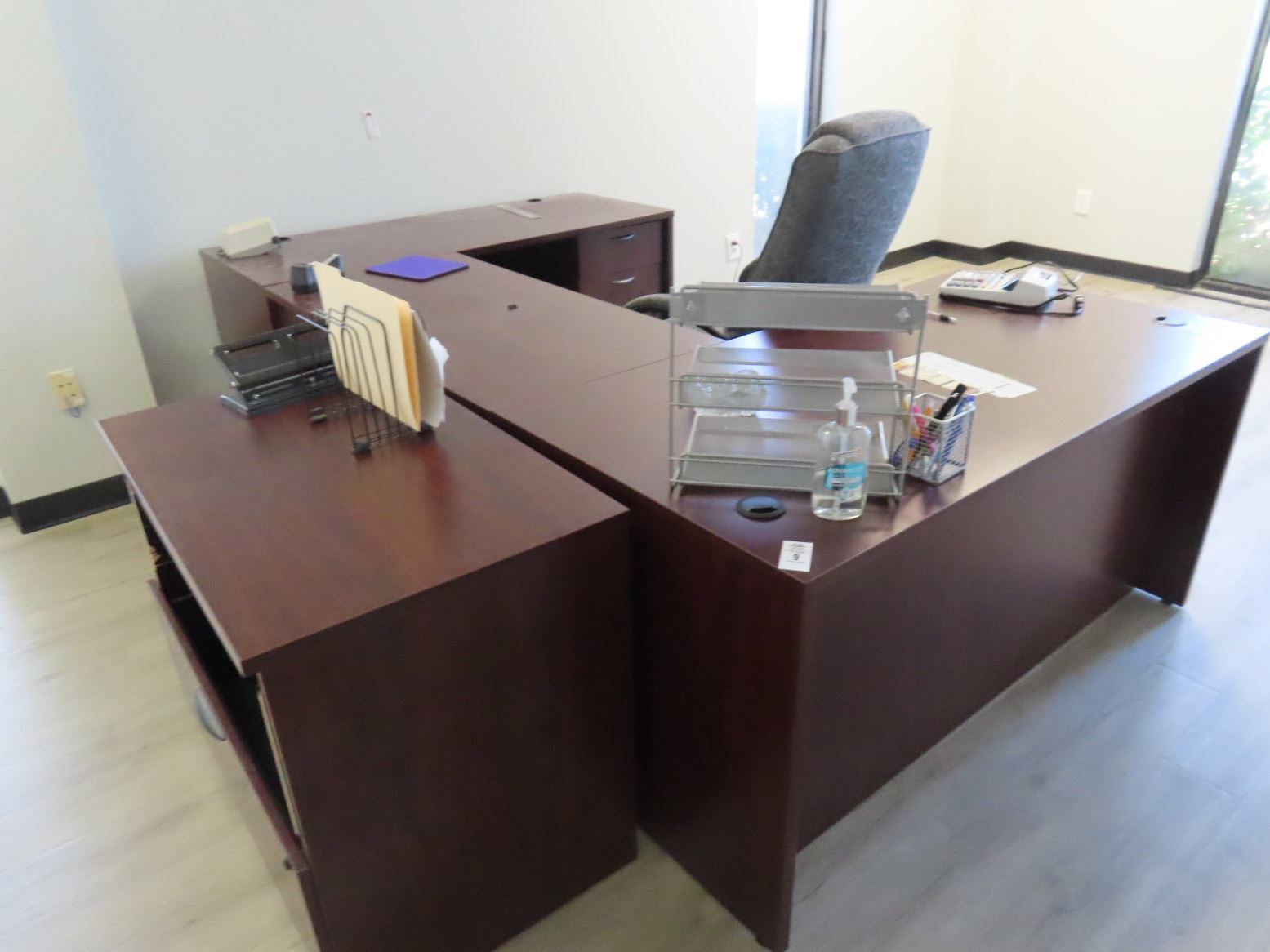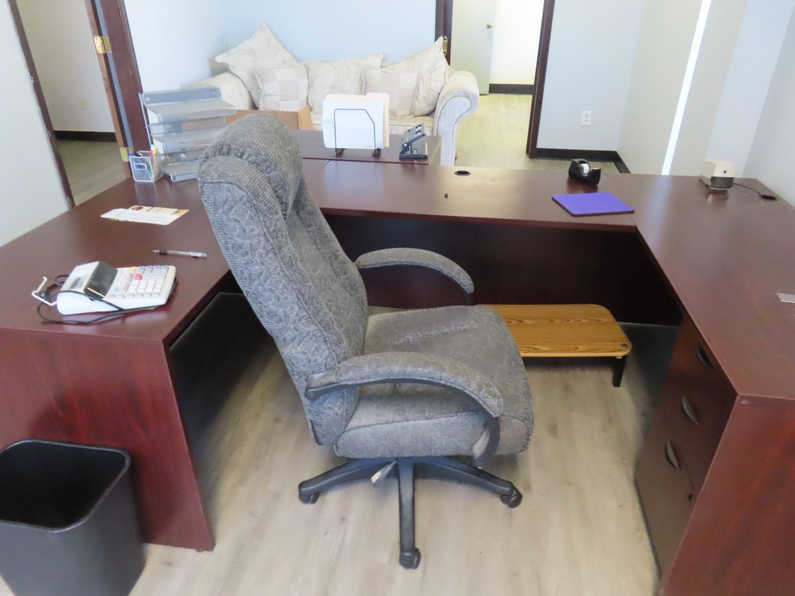 Office Contents w/Cherry U Desk, Lateral File Cabinet, Chair, Adding Machine, Sofa