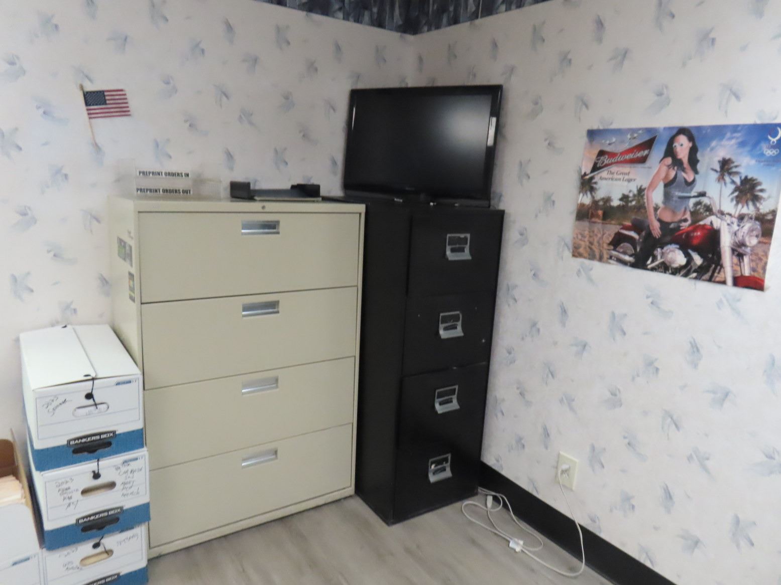 Office Contents w/Desk, Bookcase, Printer, Adding Machine, File Cabinets
