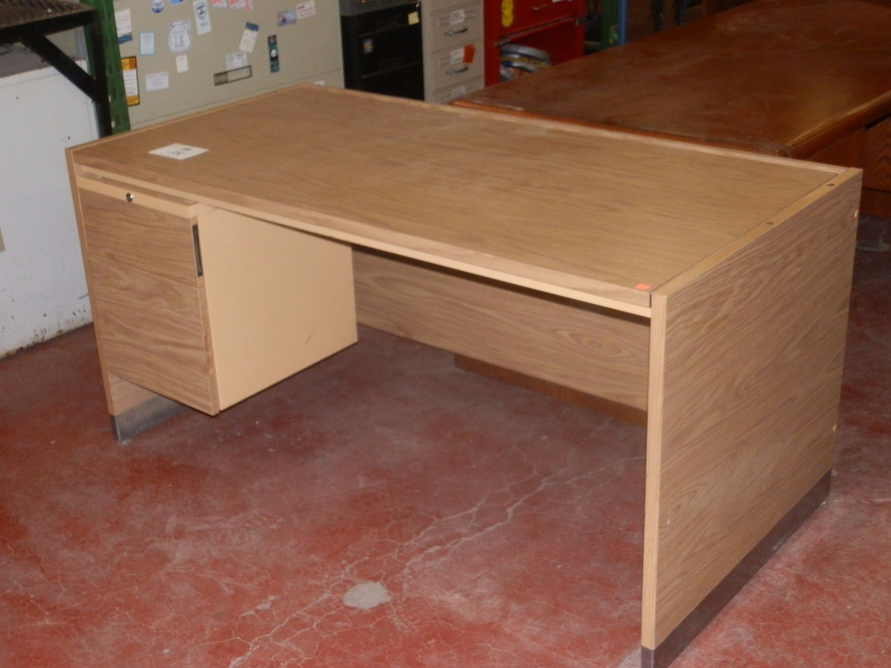 brown laminate office desk single pedestal 30"Dx60"Wx30"H