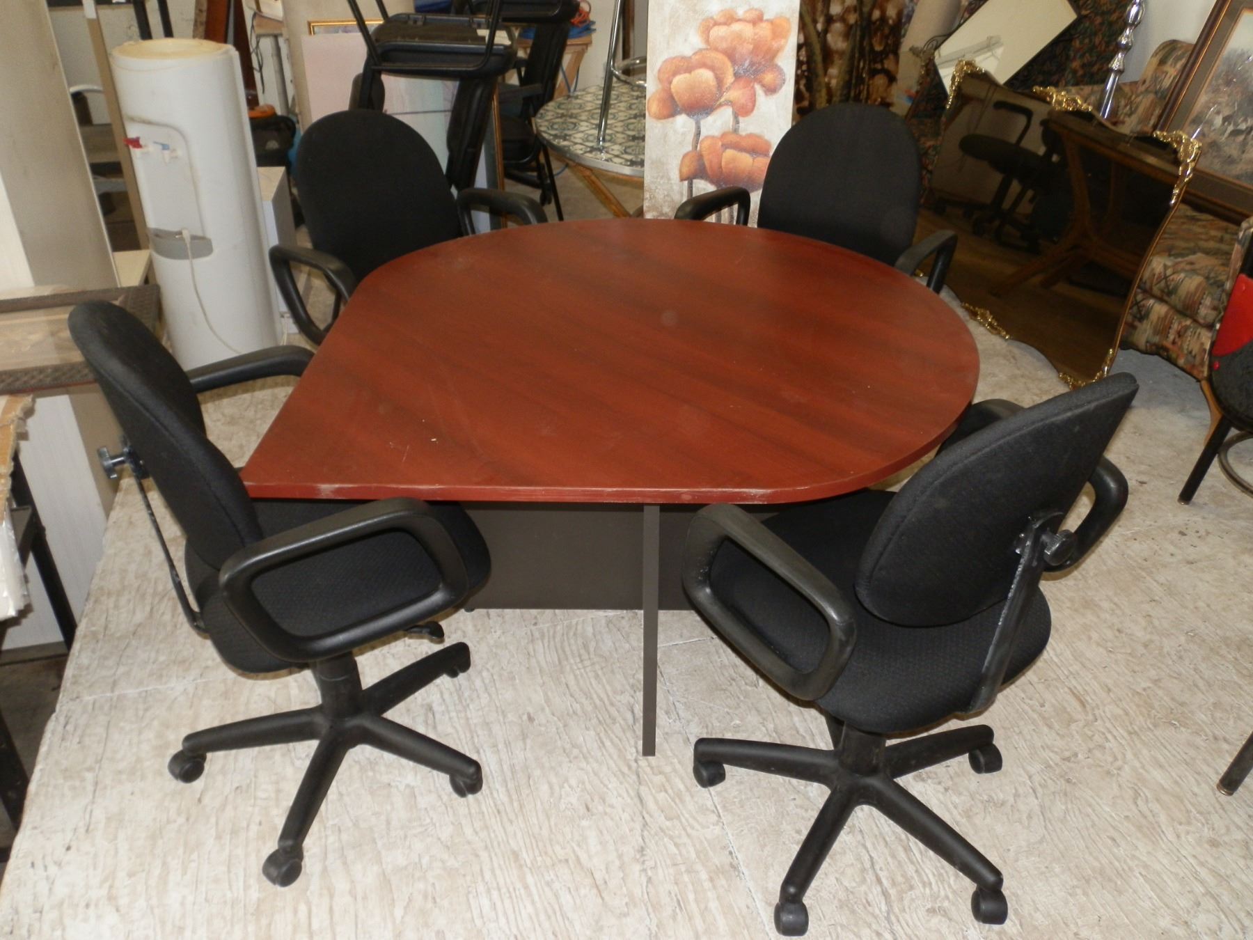 Office Table & Chairs, you get the table and 4 office chairs on wheels all for one money...in good condition...used