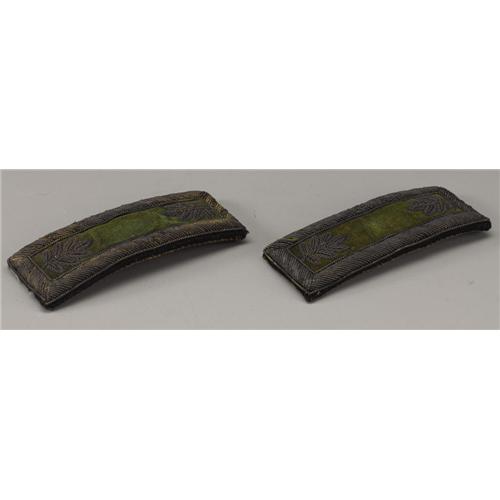 <B>Pair of Officer Shoulder Straps for Major of Sharpshooters.</B></I> 4” x 1.5”, marked on back with "SAMUEL CORN, 59 BROADWAY, NEW YORK", normal age wear and tarnishing to wire. A rare rank for sharpshooters. <B></B></I><BR><BR><b>Shipping:</b> Miscellaneous Collectibles, Smal (<a target="_blank" href="http://www.heritageauctions.com/common/shipping.php">view shipping information</a>)