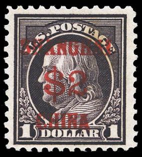 Offices in China, 1919, $2 on $1 violet brown. Scott K16. F-VF