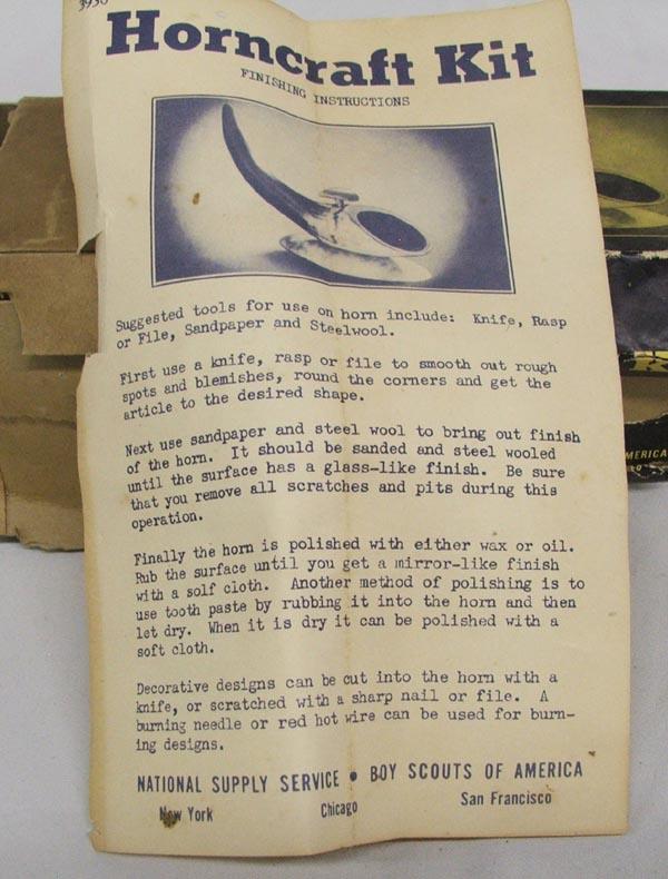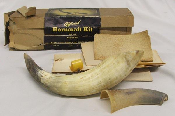 Official Boy Scout Horn Ashtray Kit, original box, measures approx. 8.5'' x 1.75''. SHI $25.