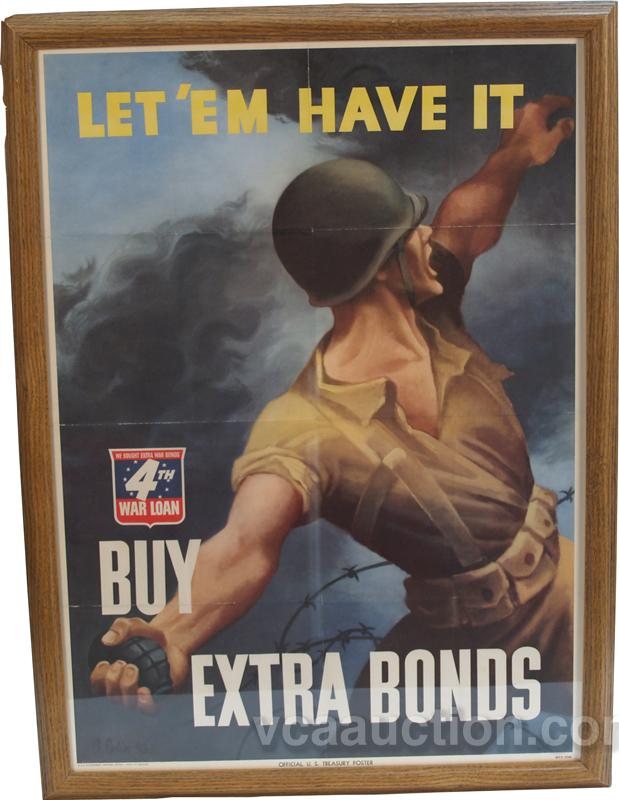 Official US Treasury War Bond Poster "Let 'Em Have It...Buy Extra Bonds" all original in frame - 22" x 30"