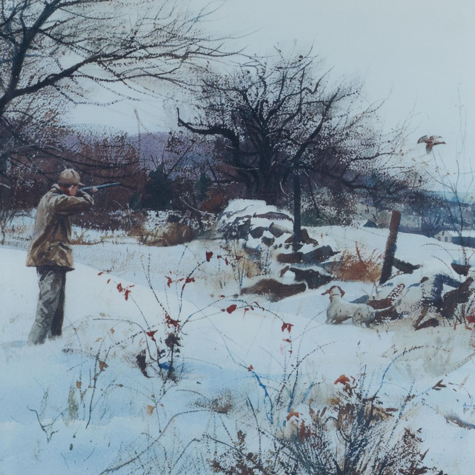 A color lithograph signed by Ogden M. Pleissner, N.A., in pencil beneath, privately published and copyrighted for the members of the Anglers' Club of New York in a limited edition of 350. It includes a portion of the embossed stamp in the lower right corner. Includes the letter of purchase from 1967 along with the original cancelled check. Additionally included is a brochure of the artist from 1959 while sold in Milch Galleries, New York.
