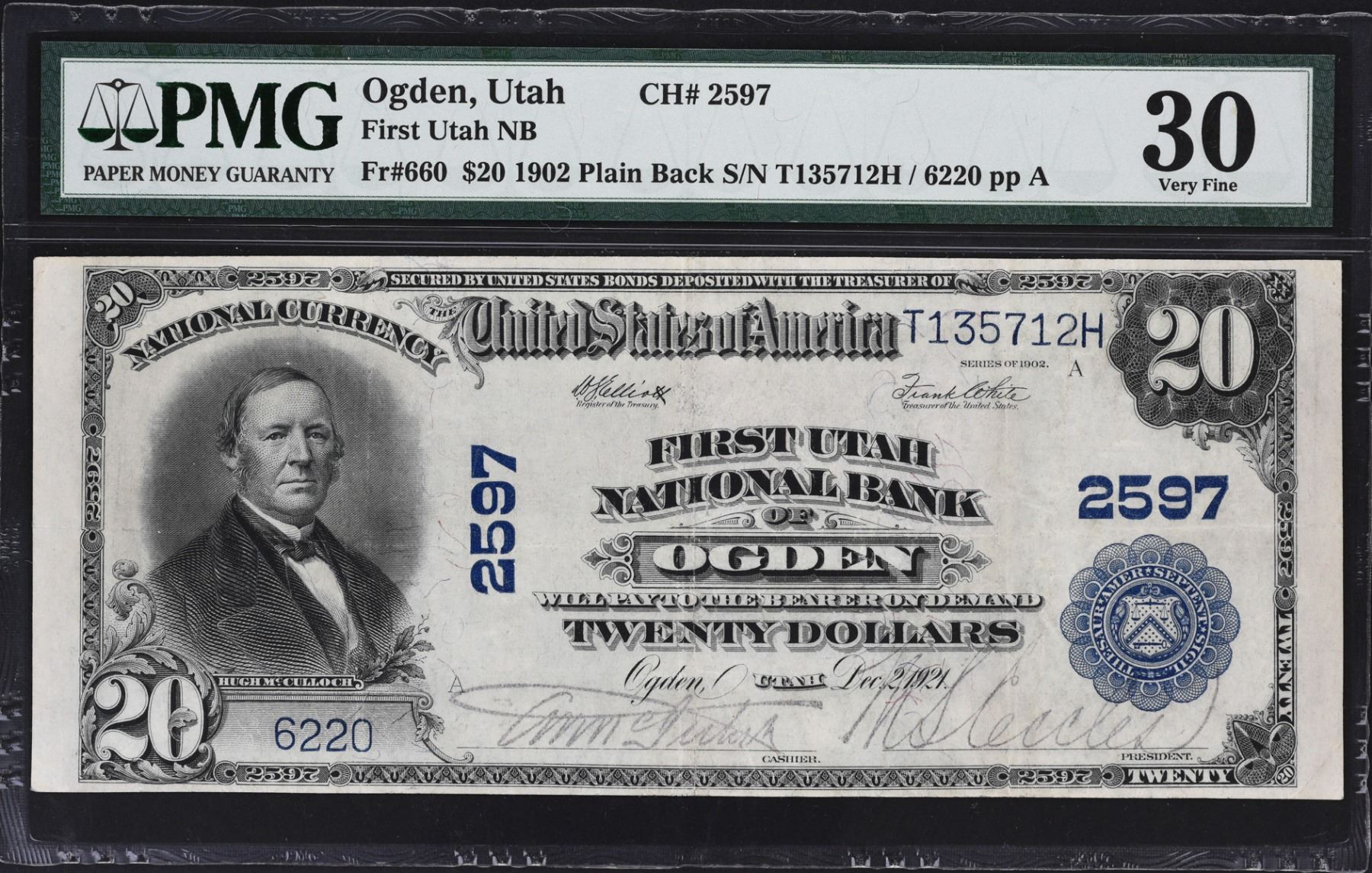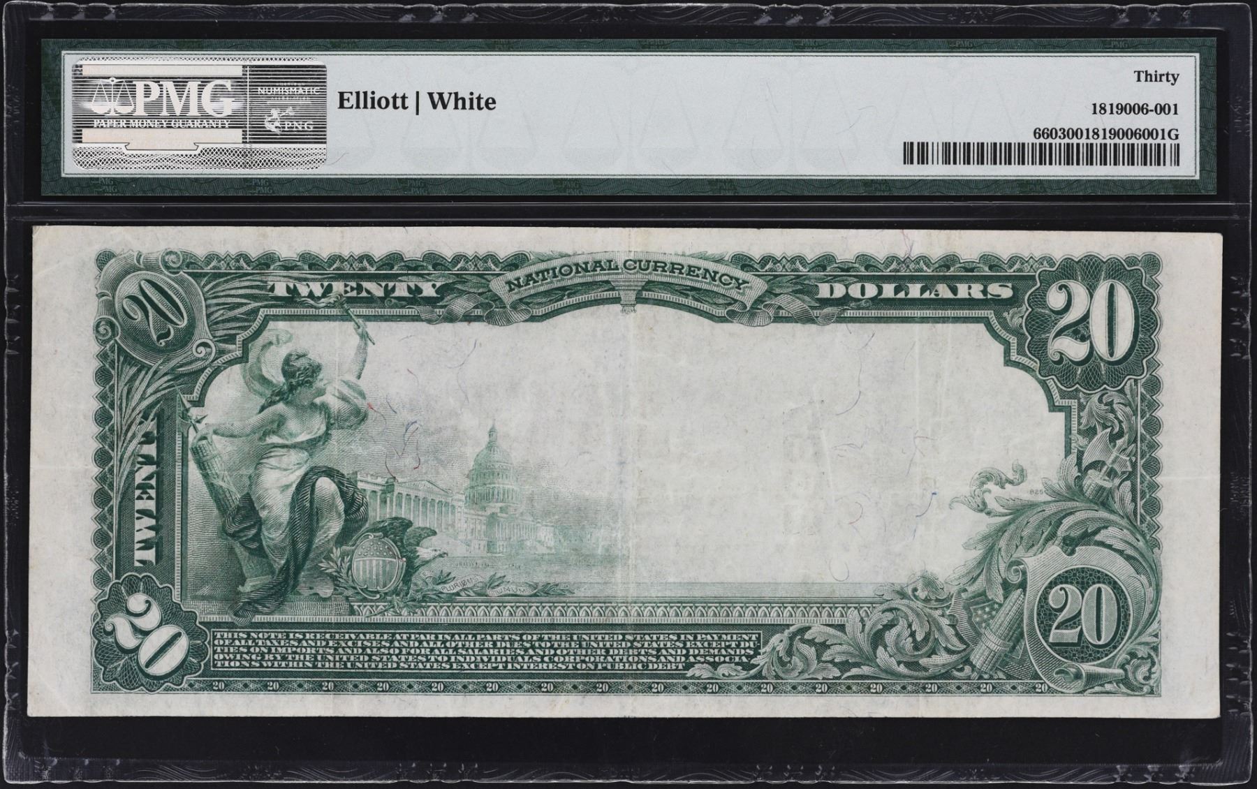 A bank that operated under an impressive amount of titles with five total. This pleasing offering comes from the third for which there are 24 known per Track and Price. This appealing twenty shows nice appeal throughout for the grade with attractive signatures and problem free paper.