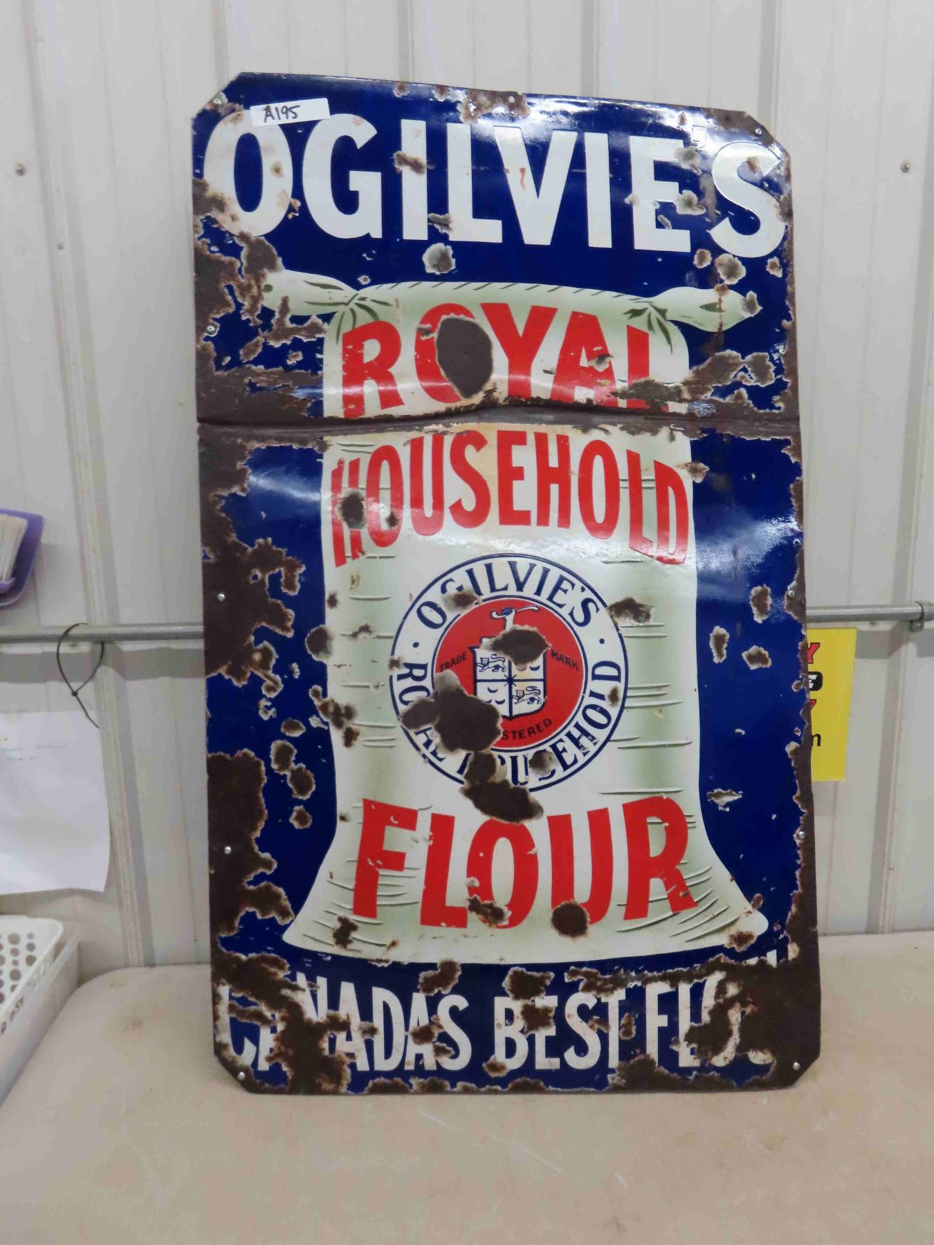 Ogilves Household Flour 4 Color Porcelain Sign 29'' x 47'' -Lots of Chips But Displays Nice - Corners Cut?