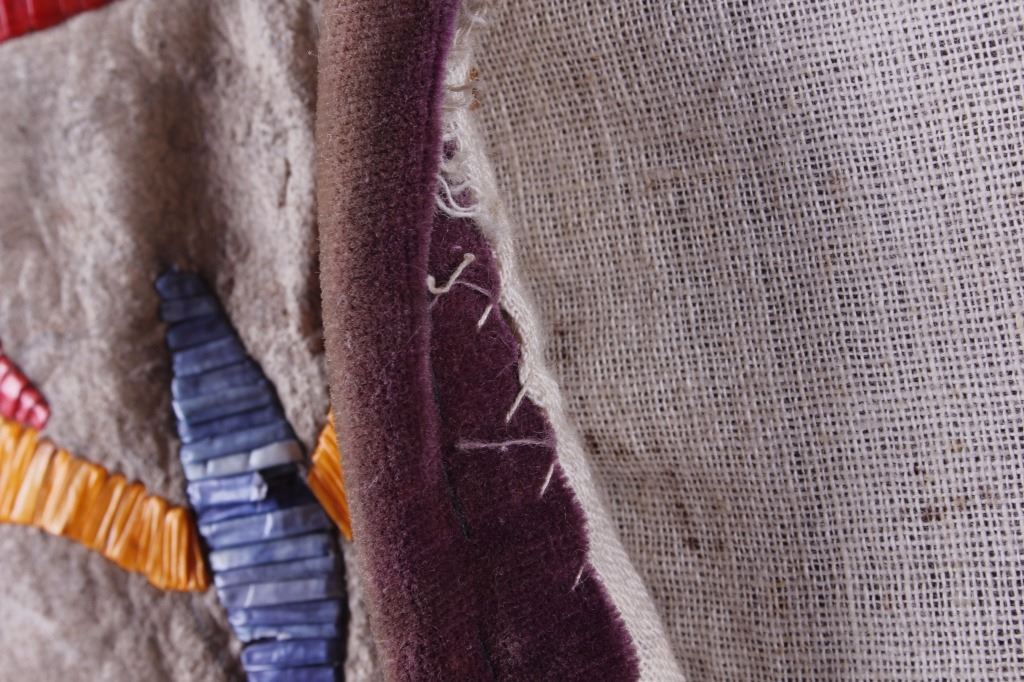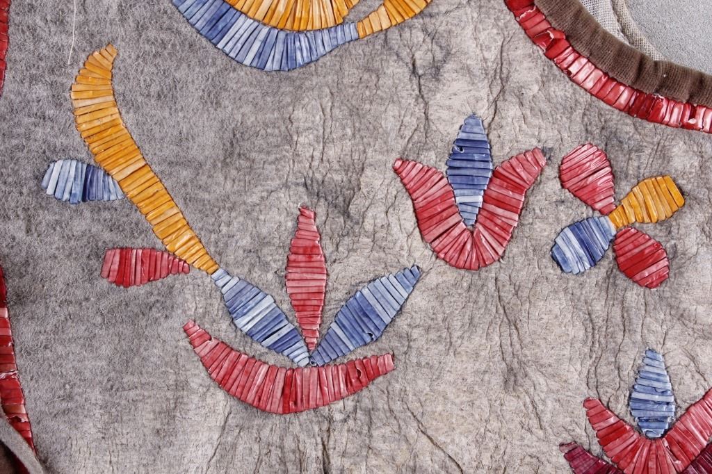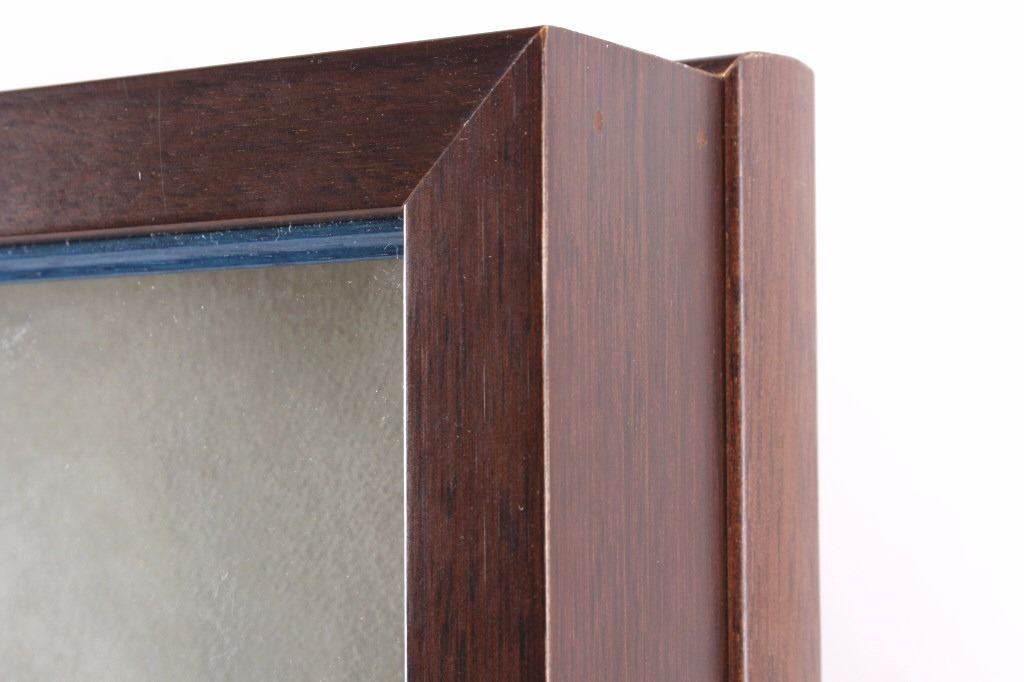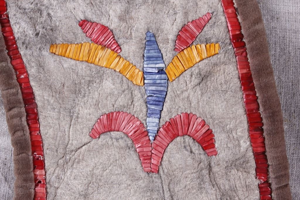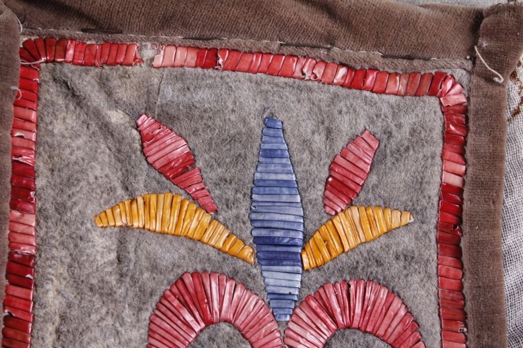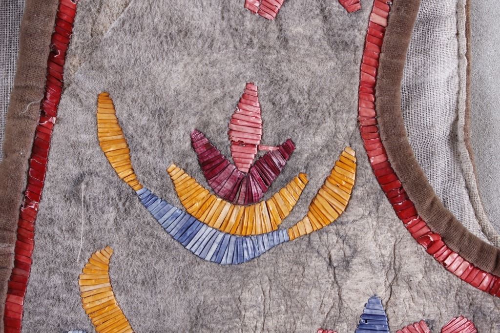 This is an exceptional authentic original Oglala Sioux Native American Indian Quilled Vest from circa 1890. The vest shows an early trade cloth construction back with Buffalo Indian tanned hide front showing excellent porcupine quill work with red, blue, orange mineral ocher dye in a fantastic pattern. The piece has been wonderfully preserved showing excellent quality and condition. The front of the vest is framed in red ocher dyed porcupine quillwork with various pictorial geometric patterns throughout and shows two hide ties in the center. Provenance: From a large Old West & Native American private collection in Northwestern Montana and was recovered from the Rosebud Reservation circa 1890 in South Dakota. This has been finely mounted in a shadow box frame for display under glass for preservation and on a suede leather like backing (the vest can be removed from the shadow box for shipping or other displaying options). Brass tag is marked, “Oglala Sioux - Circa 1890 - Rosebud Reservation, South Dakota.” One of the finest quill work vest from the 19th century we have offered for sale. The shadow box frame measures 23”W x 23.5”L x 2.75”D. The vest as displayed measures 18.75"W x 19"H. Condition: Little to no quillwork loss, supple hide, and overall fine museum quality condition for its age.