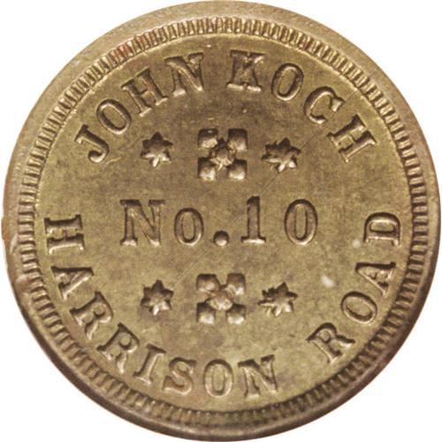 <B>1863 John Koch, Fuld-OH-165CS-2b, R.8, Cincinnati, OH, MS63 NGC.</B></I> A richly toned R.8 brass Civil War token. All of the tokens of Koch are rare.<BR><I>Ex Arthur C. Fritz, Rosen Collection. From The Troy Wiseman Collection.</B></I>