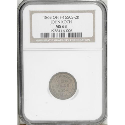 Ohio 1863 F-165C5-2b John Koch Cincinnati 0, MS63 NGC.