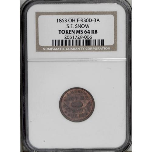 Ohio 1863 OH F-930D-3A S.F. Snow, West Unity Ohio, MS64