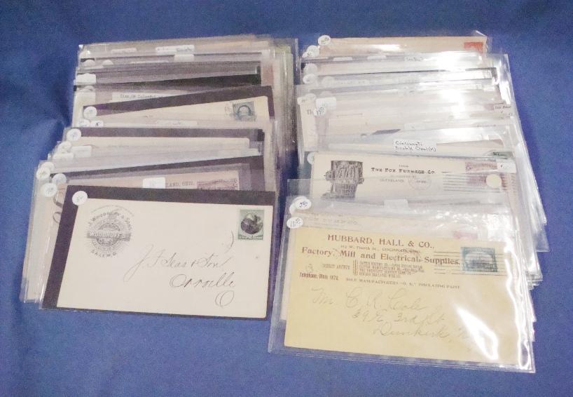Useful lot of (125) different Ohio advertising covers and postal cards. Wide range of various subject matter. Many small towns. Some all over back designs, etc. Loads of $2-20 covers. Well worth review. Est.$250-350