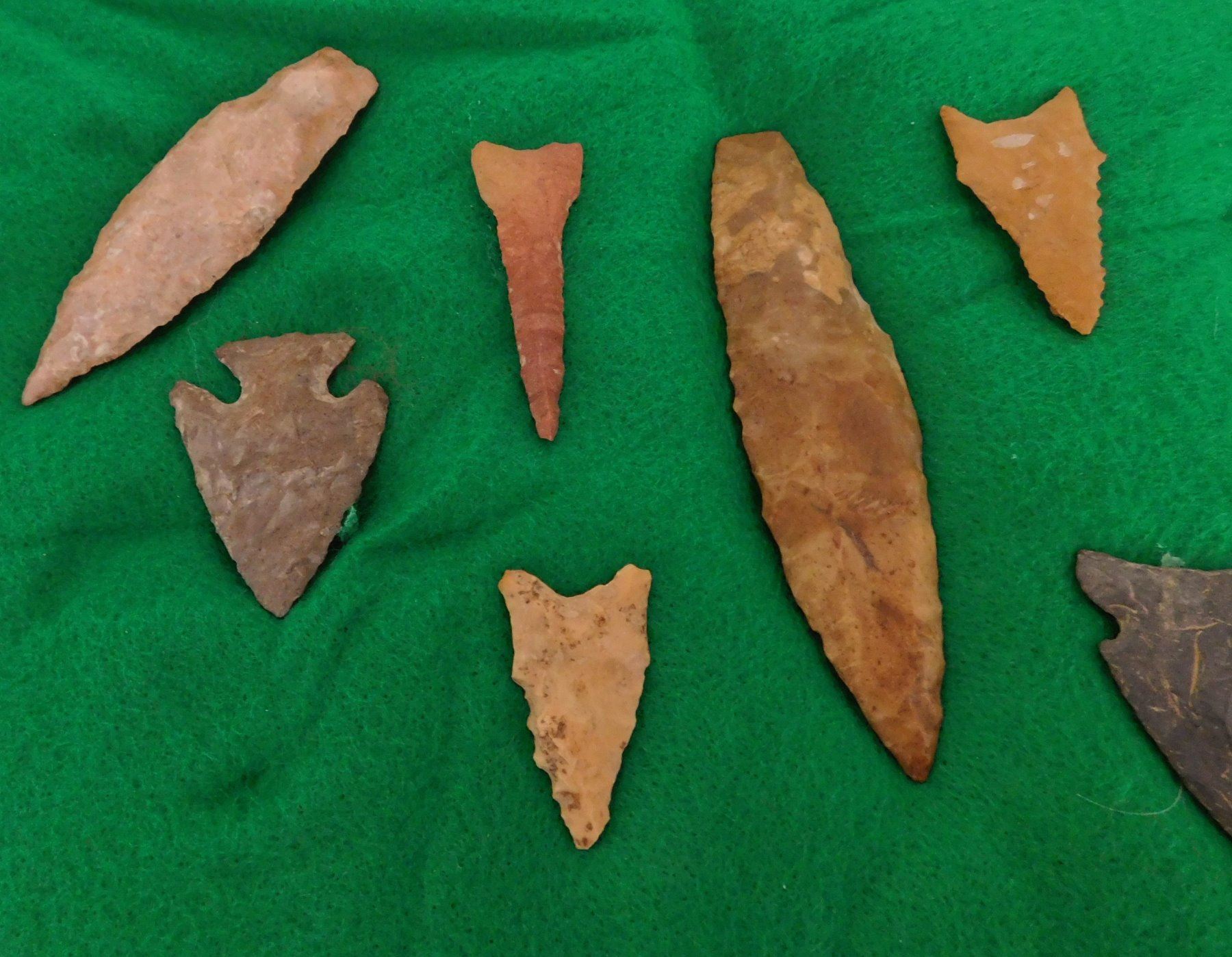 Ohio Artifacts, paleo to archaic periods. Made of chert, the paleo point measures 4.25". Huron County, Ohio. Frame not included. Condition: Good, see images. Shipping: $20.00 w/insurance and signature.