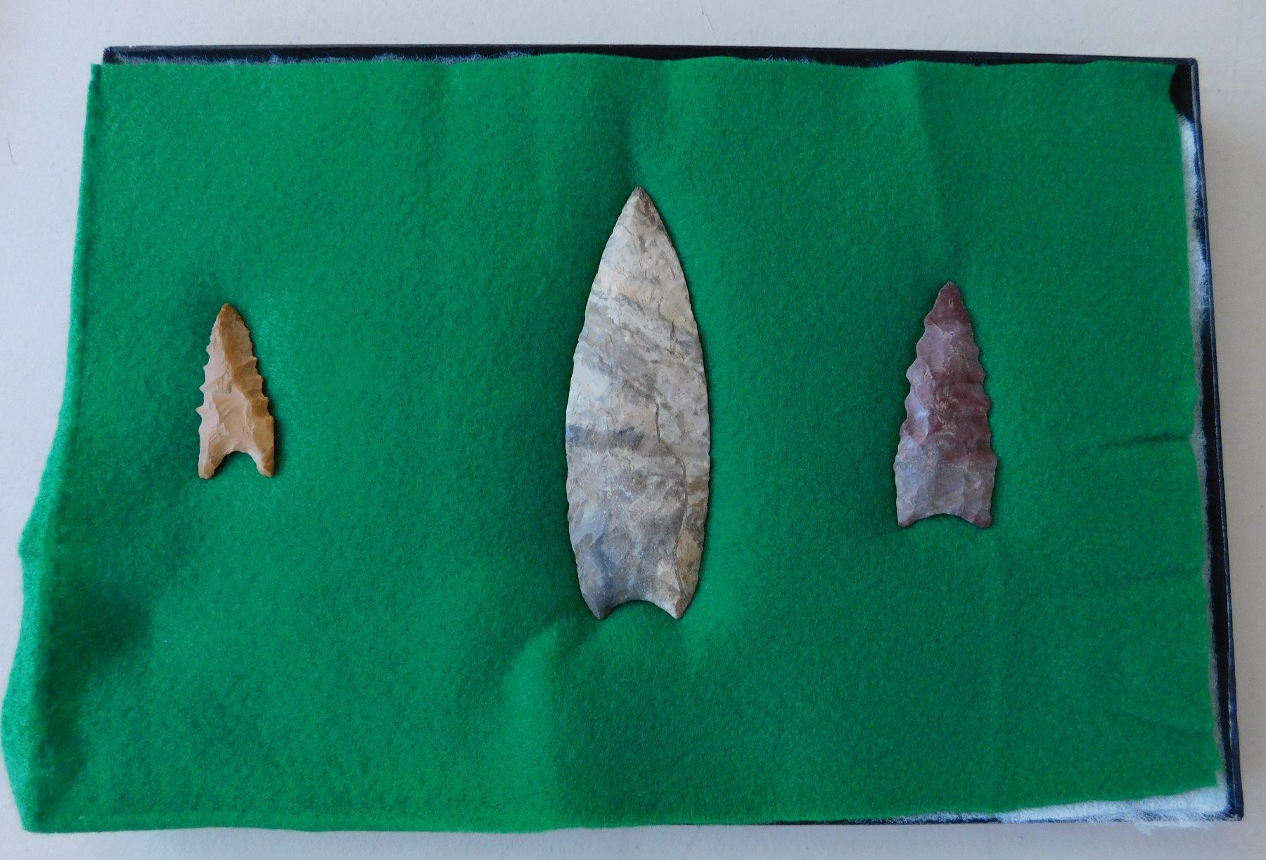 Ohio Flint Collection, paleo period. Made of chert, the largest item is 4.5". Scioto County, Ohio. Frame not included. Condition: Good, see images. Shipping: $25.50 w/insurance and signature.