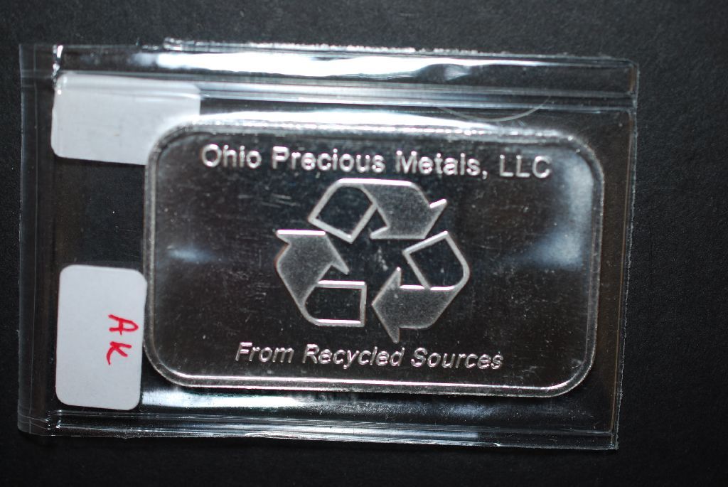 Ohio Precious Metals, LLC Silver Ingot From Recycled Sources; .9995 Fine Silver 1 Oz.; EST. $40-50