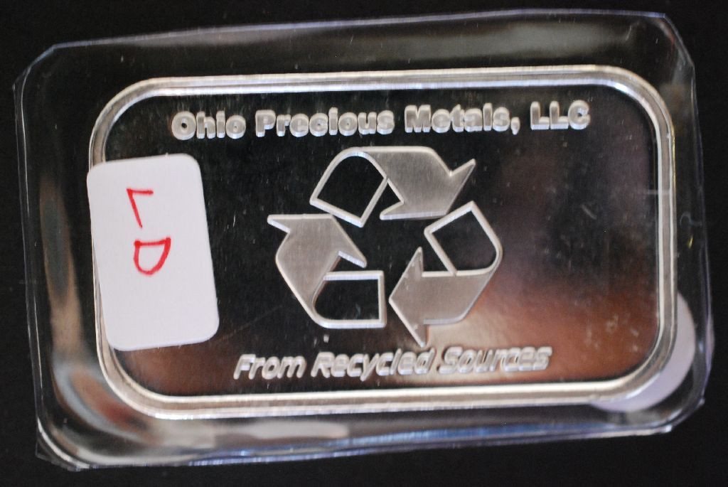 Ohio Precious Metals Silver Ingot; .999 Fine Silver 1 Oz.; From Recycled Sources