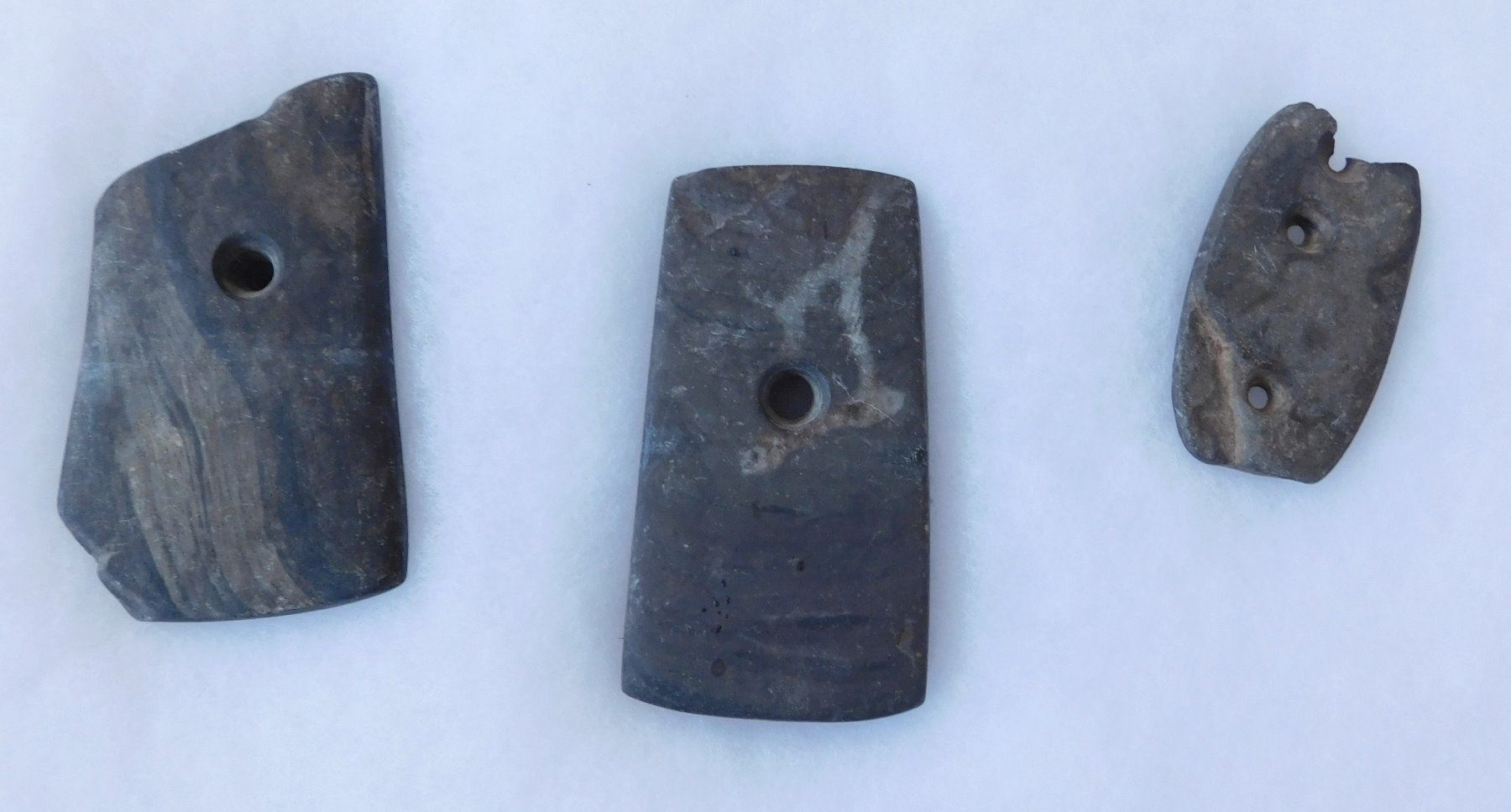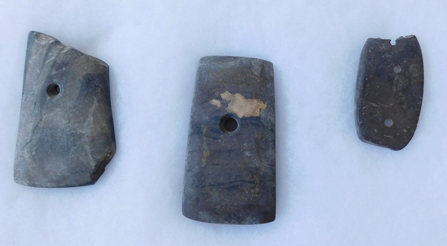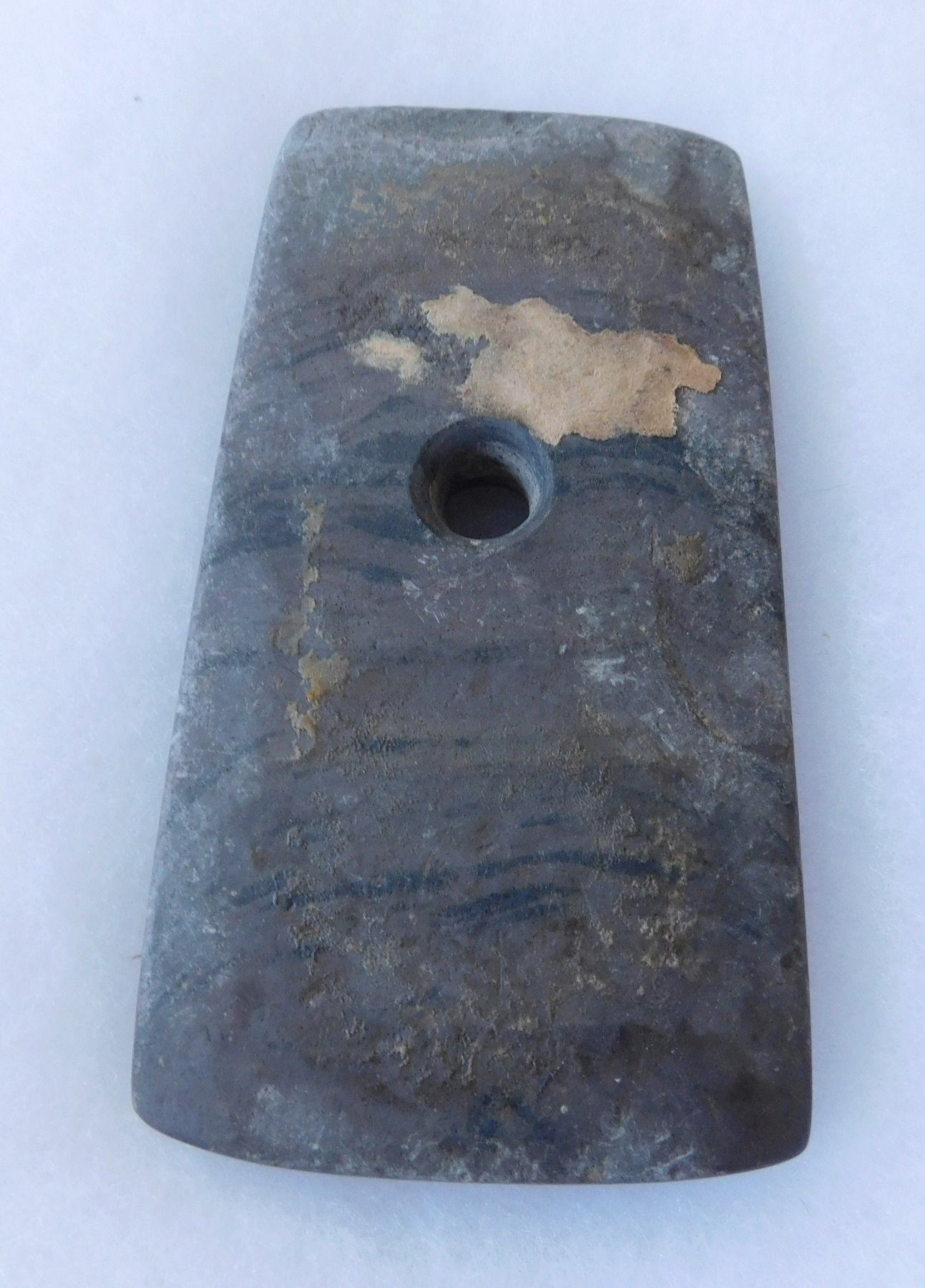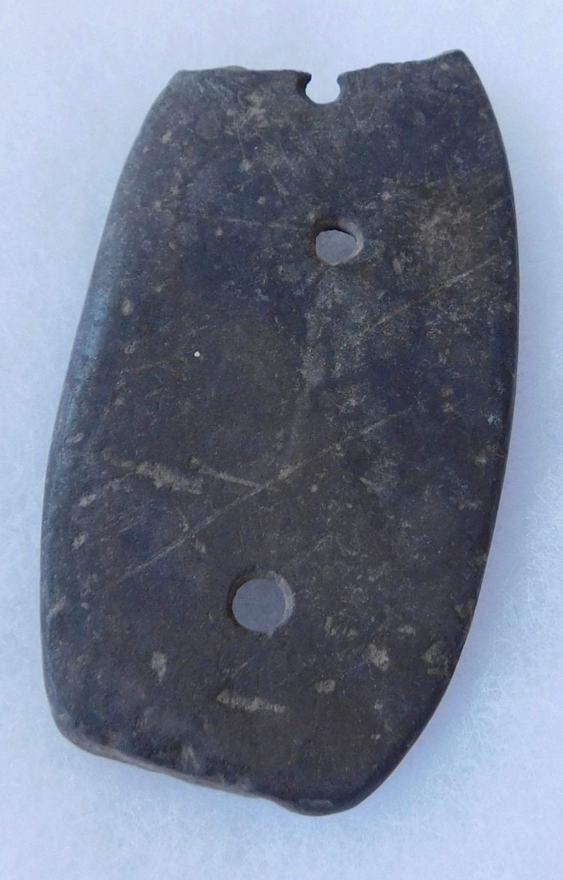 Ohio Slate Collection, Hopewell era. Made of banded slate, the items measure from 2 3/4" to 3 3/4". Scioto County, Ohio. Classic items, frame not included. Condition: Some damage and wear, see images. Shipping: $24.50 w/insurance and signature.