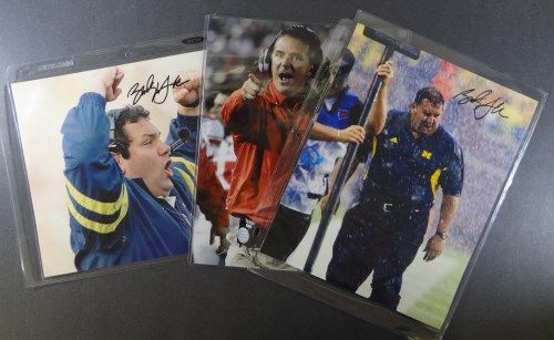 2 - Brady Hoke and 1 - Urban Meyer. No COA's. Est. Value $60.00 - $80.00.