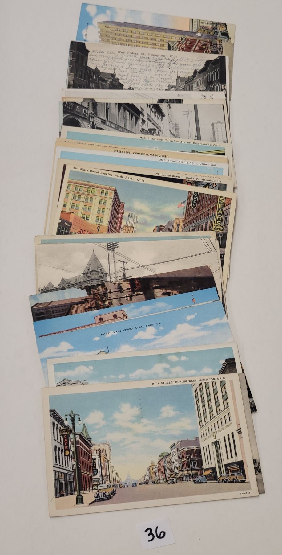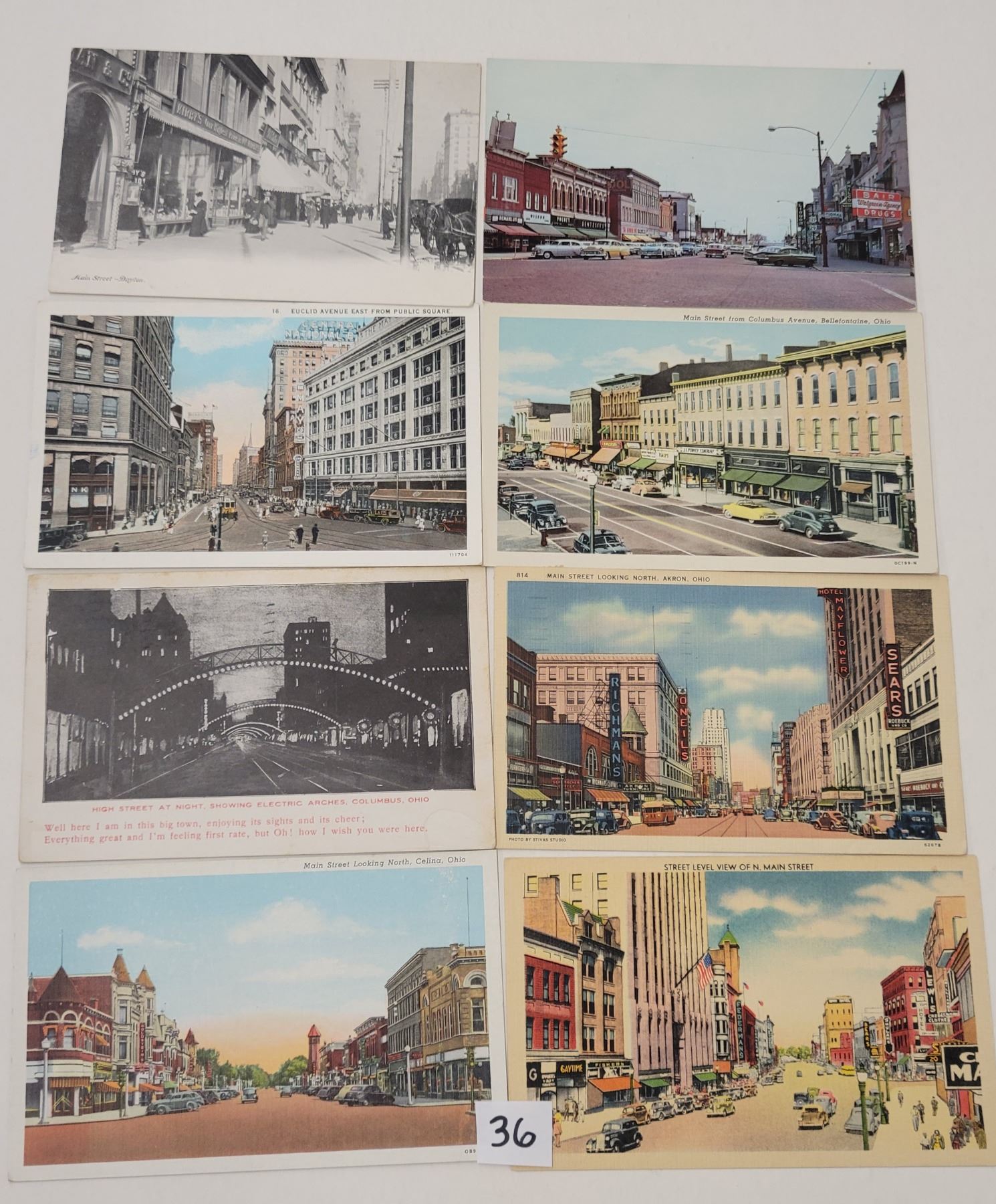 31 OH street scenes & main streets. Early to linen, a few standard chrome.