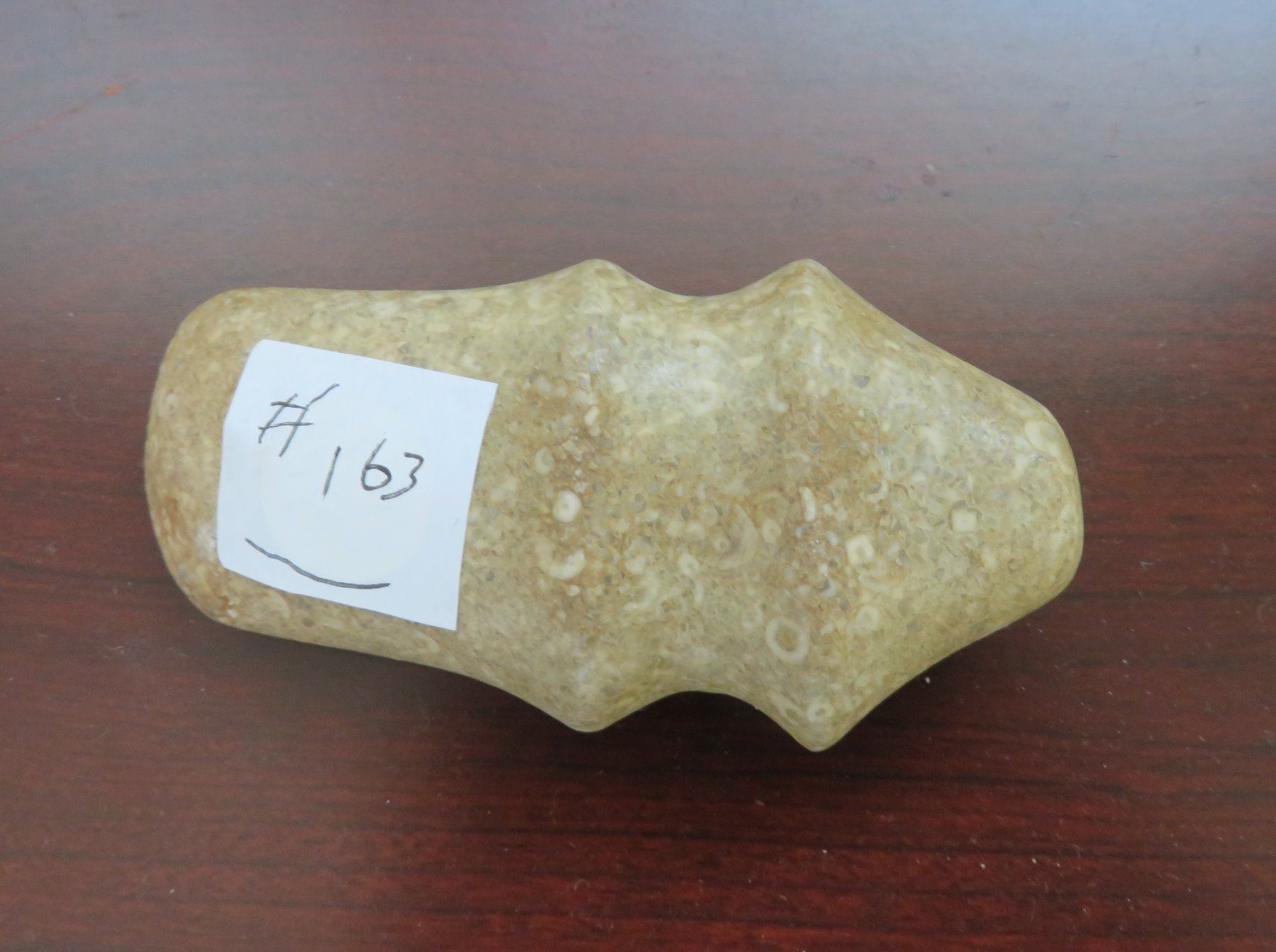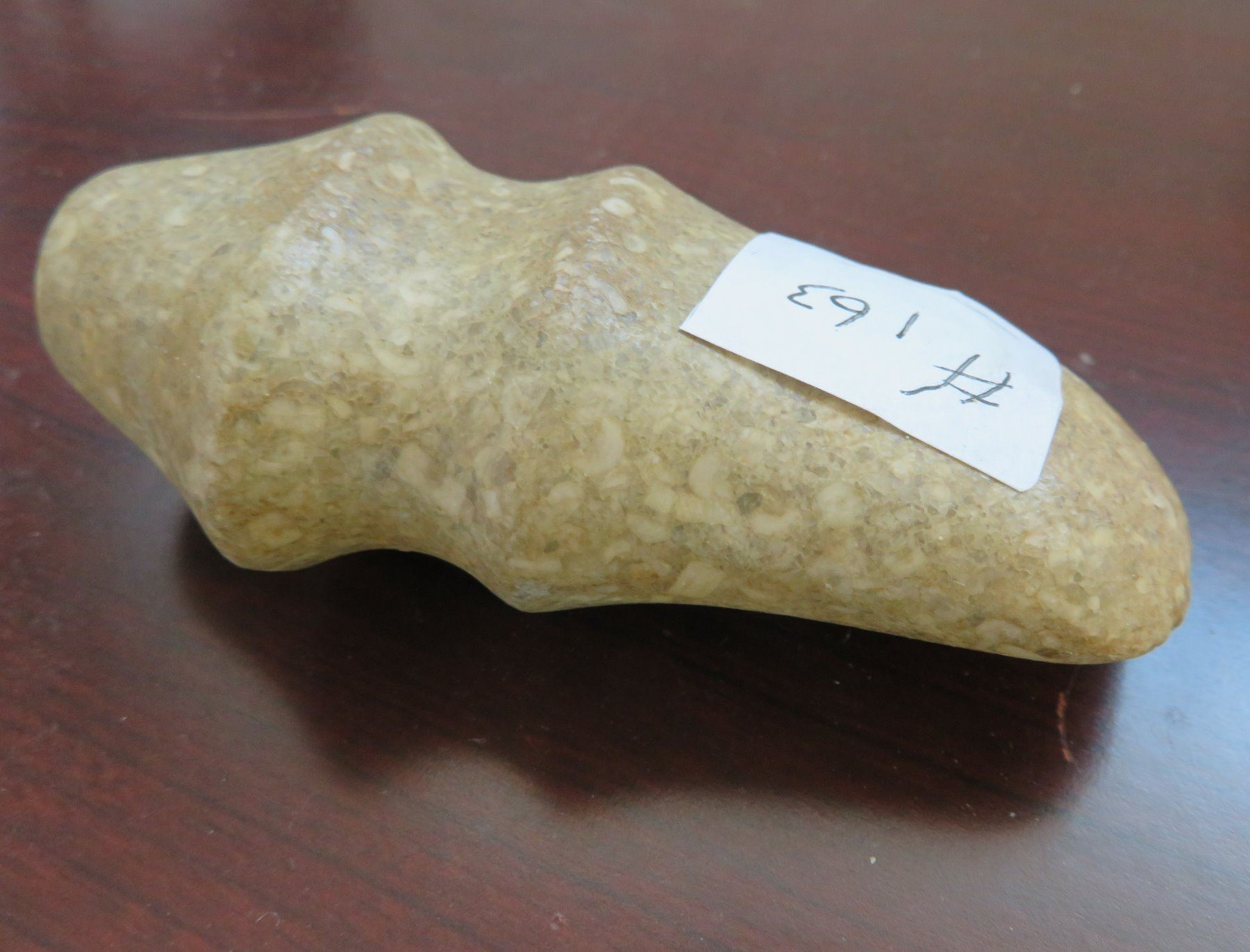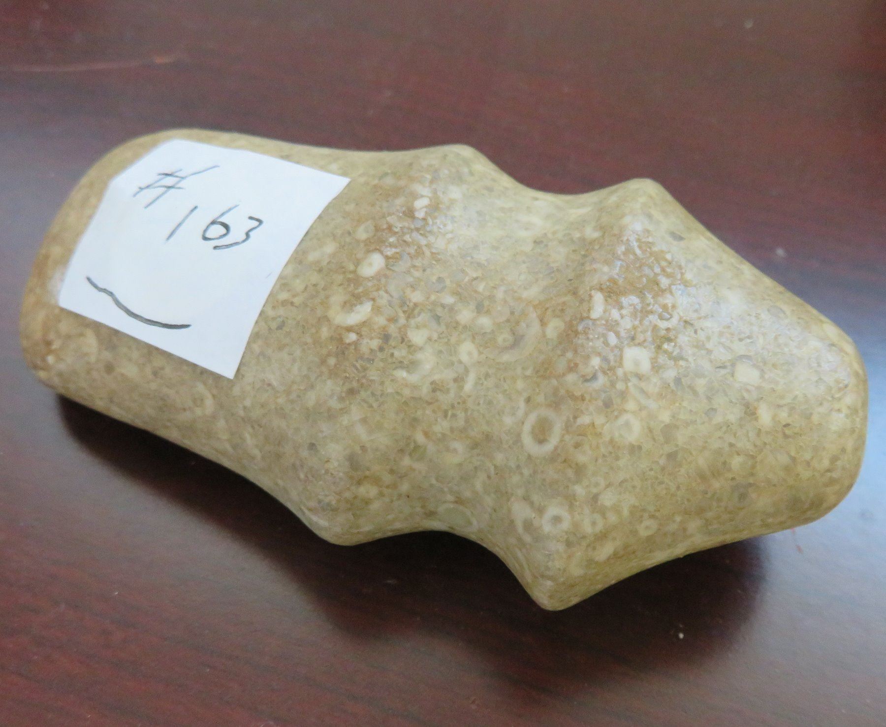 Ohio Trophy Axe, c. 300 AD. Made of porphory stone, the item measures 4" x 2" x 1". Scioto County, Ohio. Full-groove axe. Condition: Good, see images. Shipping: $20.00 w/insurance and signature, due to value.