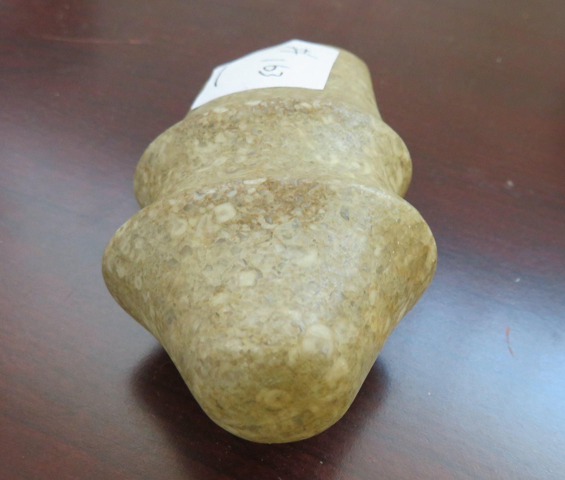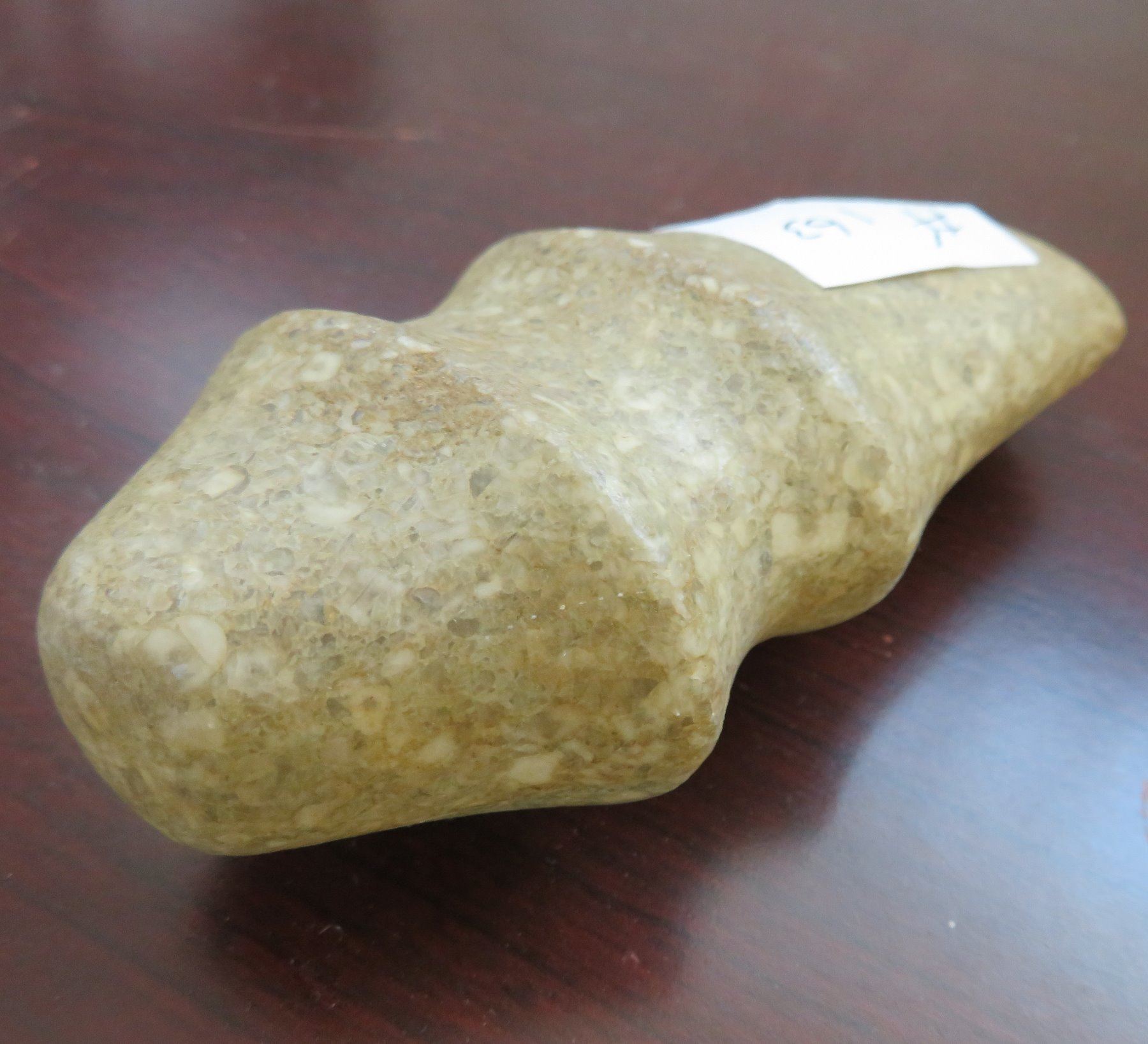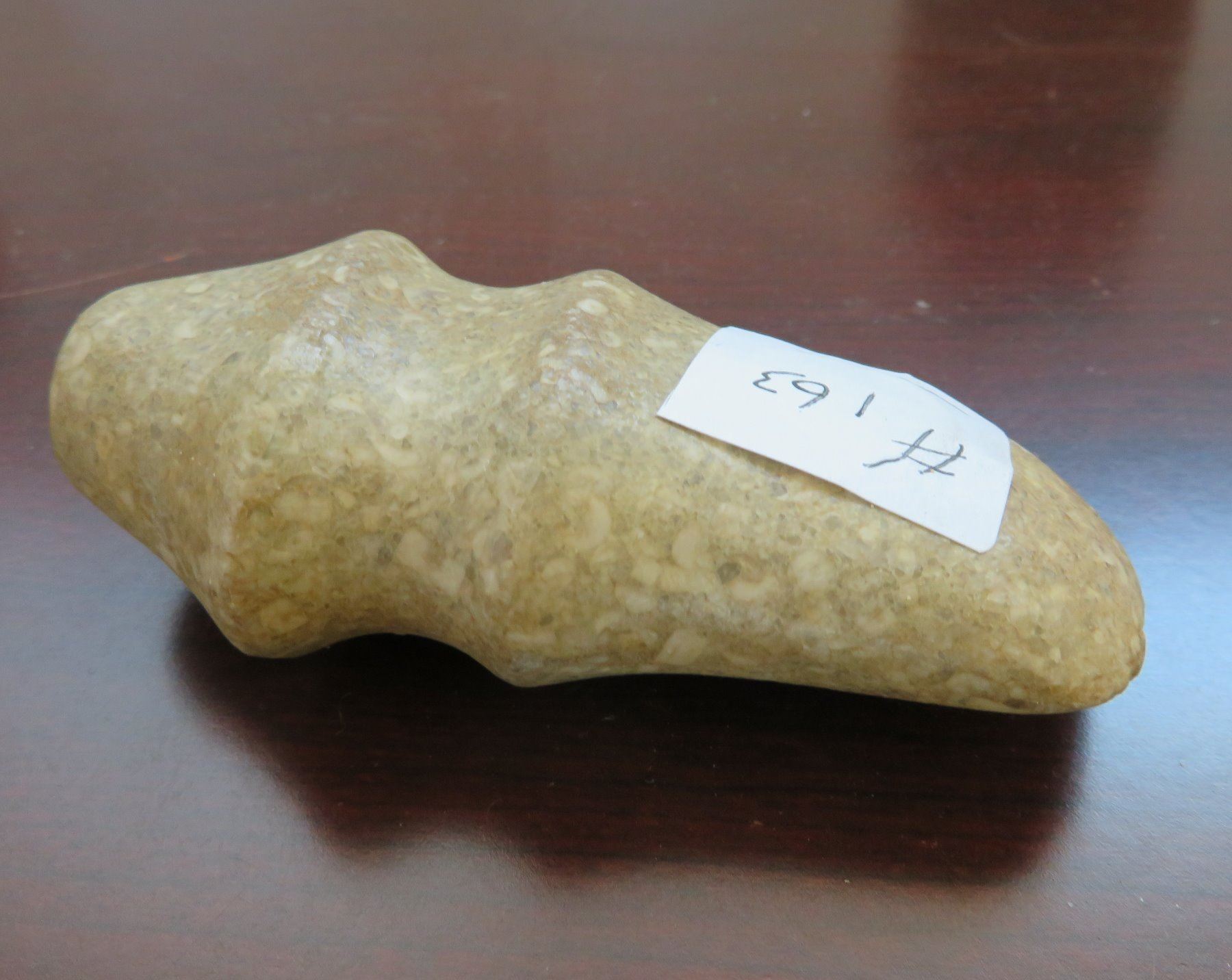 Ohio Trophy Axe, c. 300 AD. Made of porphory stone, the item measures 4" x 2" x 1". Scioto County, Ohio. Full-groove axe. Condition: Good, see images. Shipping: $20.00 w/insurance and signature, due to value.
