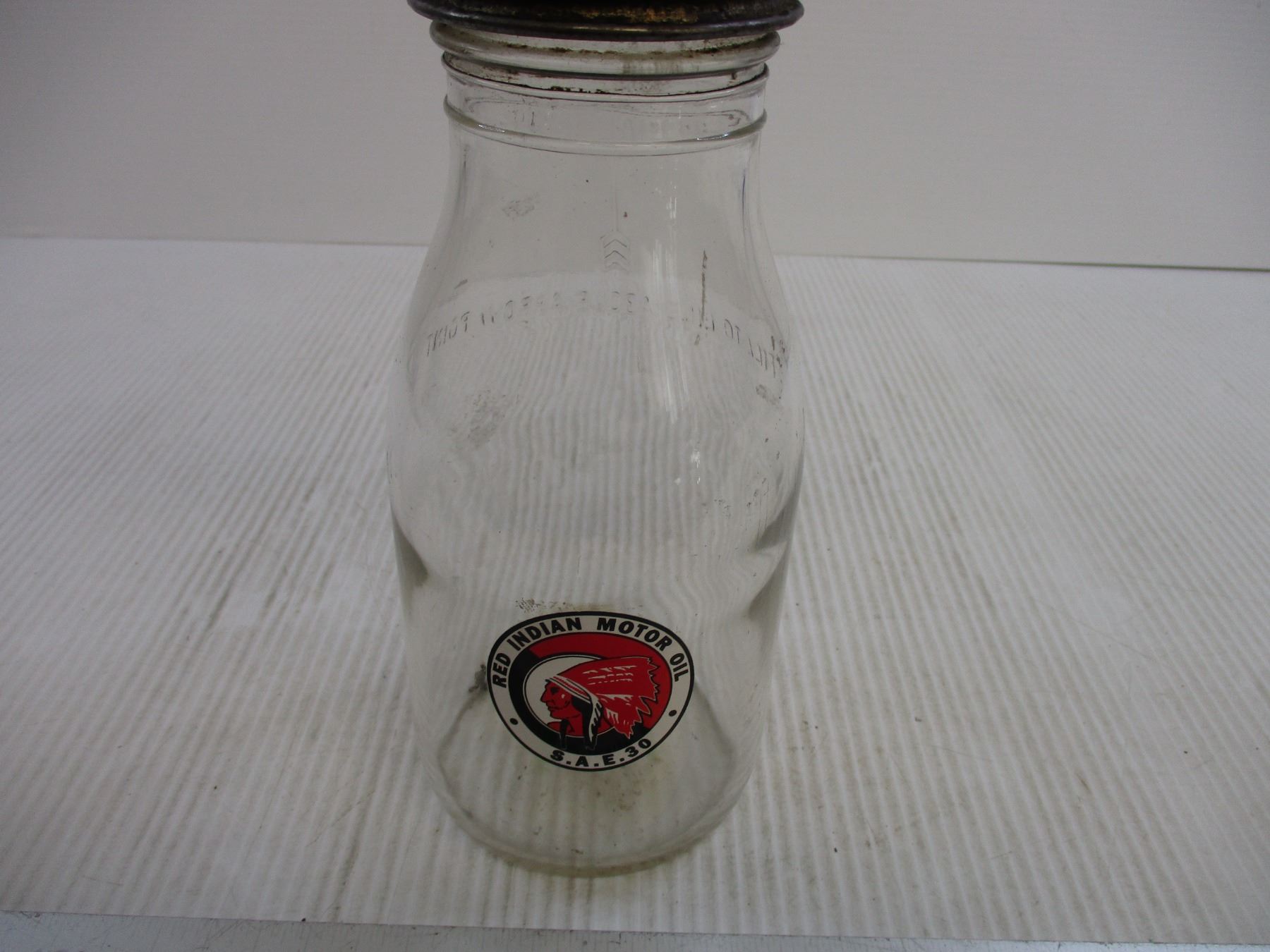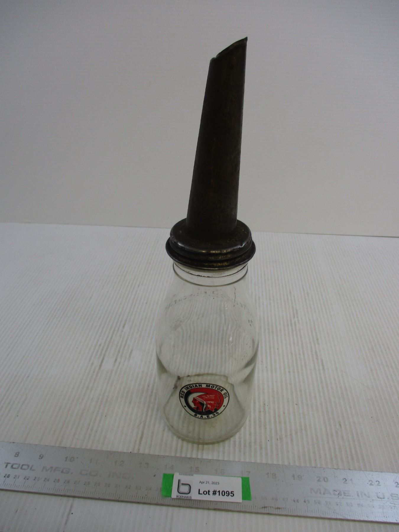 Oil Bottle and Spout w/ Red Indian Motor Oil Decal (15" Tall w/ Chip)