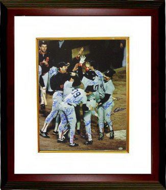 The 1986 Boston Red Sox season involved the Red Sox finishing 1st in the American League East with a record of 95 wins and 66 losses. 1986 was the first time since 1904 that the Yankees finished second in the standings to the Red Sox. This Boston Red Sox 16x20 Photo is signed by 19 players including: Oil Can Boyd, Mike Brown, Wes Gardner, Bruce Hurst, Tim Lollar, Joe Sambito, Calvin Schiraldi, Bob Stanley, Rich Gedman, Marc Sullivan, Marty Barrett, Pat Dodson, Spike Owen, Ed Romero, Dave Stapleton, Mike Greenwell, Dave Henderson, Steve Lyons, and Mike Stenhouse. Leaf Authentics Hologram and Certificate of Authenticity from Athlon Sports. Custom White Mat and Premium Mahogany Frame as shown.