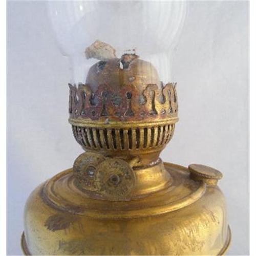 An originalEnglish brass oil lamp c1900. In working order.Marked on the base,"registered Trade Mark. V British Made" and on the wick adjustors, Duplex English make." No Damage.