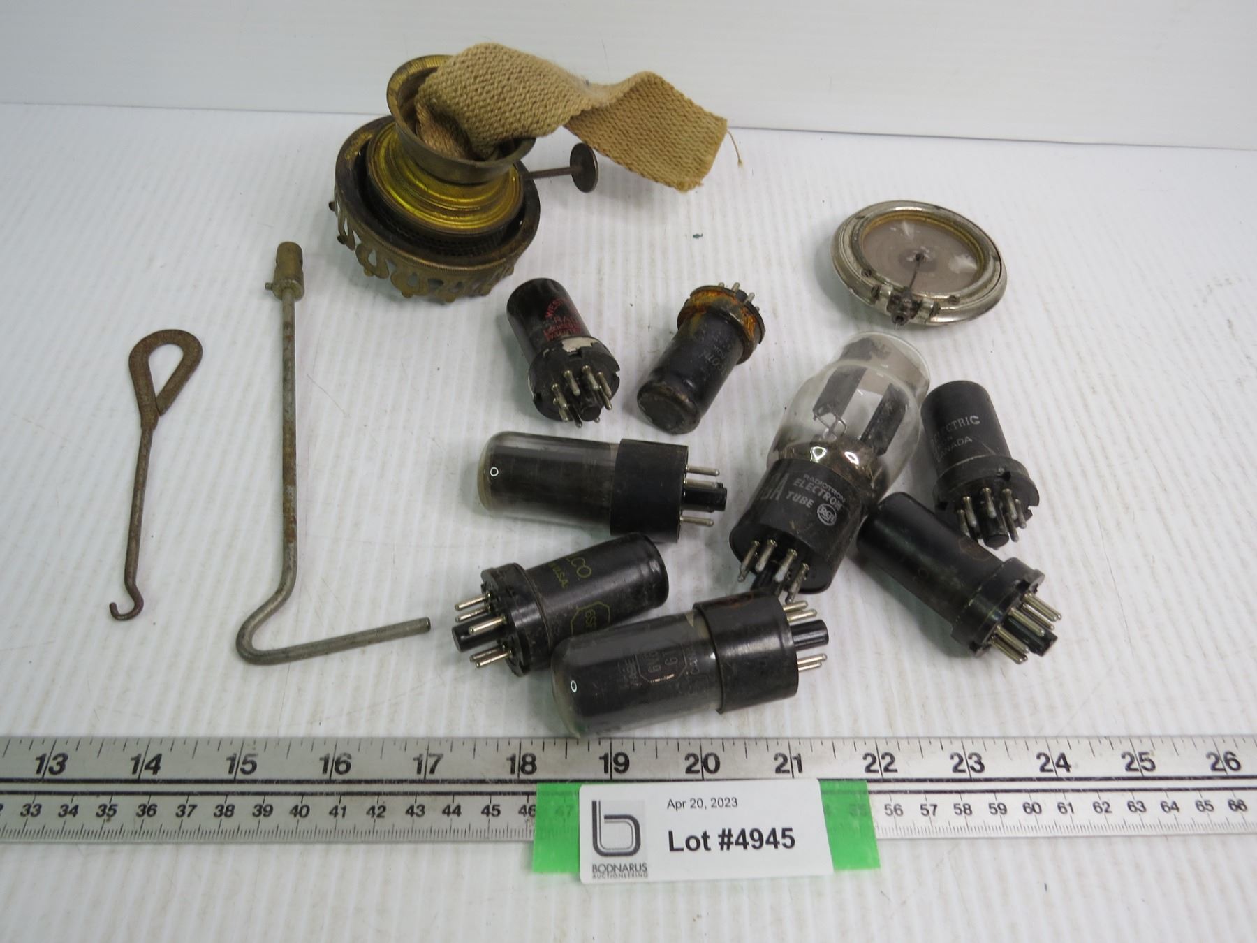 Oil Lamp Part - Vintage Record Player Needle - Assorted Radio/Tv Tubes - Misc. Items