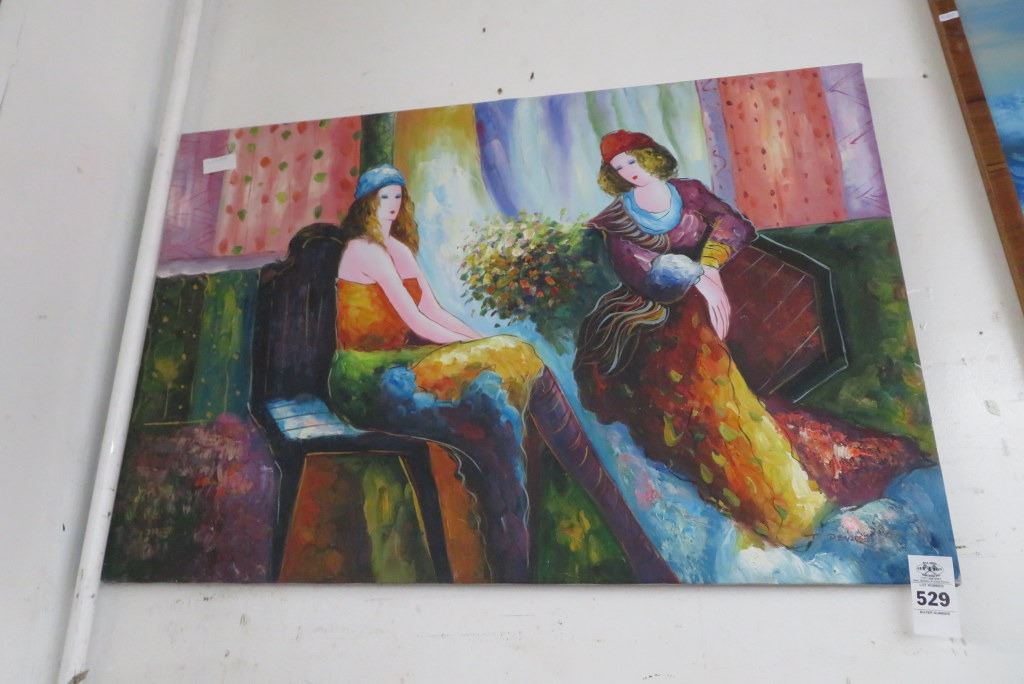 Oil On Canvas "Ladies In Waiting" by T. Denver - 32" x 24"