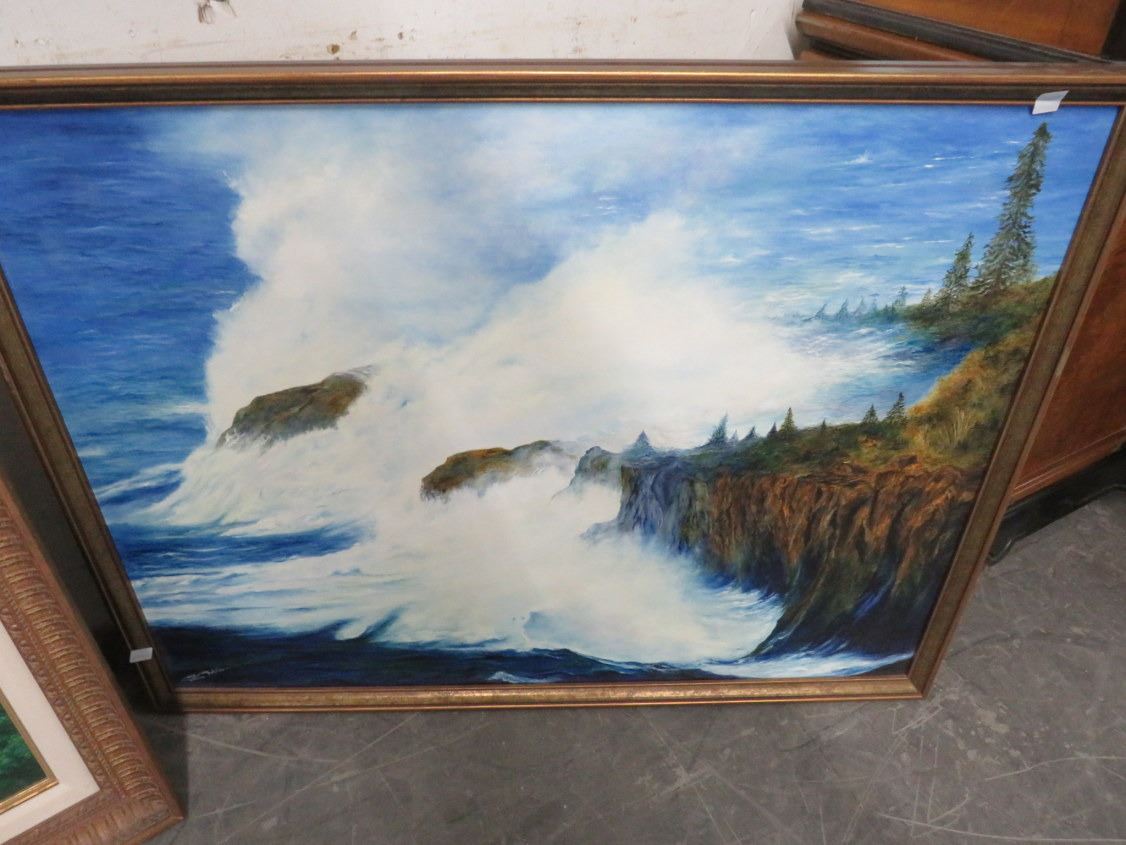 Oil On Canvas Rugged Seascape - Signed Makres 24 x 36