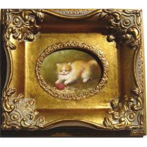 Small Framed Oil Painting Of A Kitten with a Ball