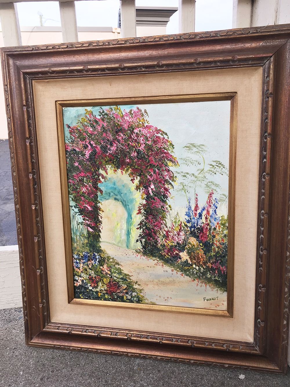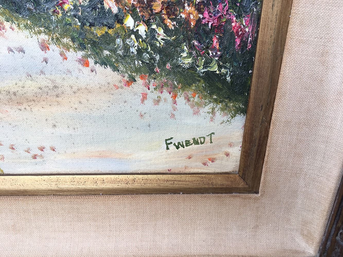 F. Wendt signed oil painting on canvas, framed floral landscape.