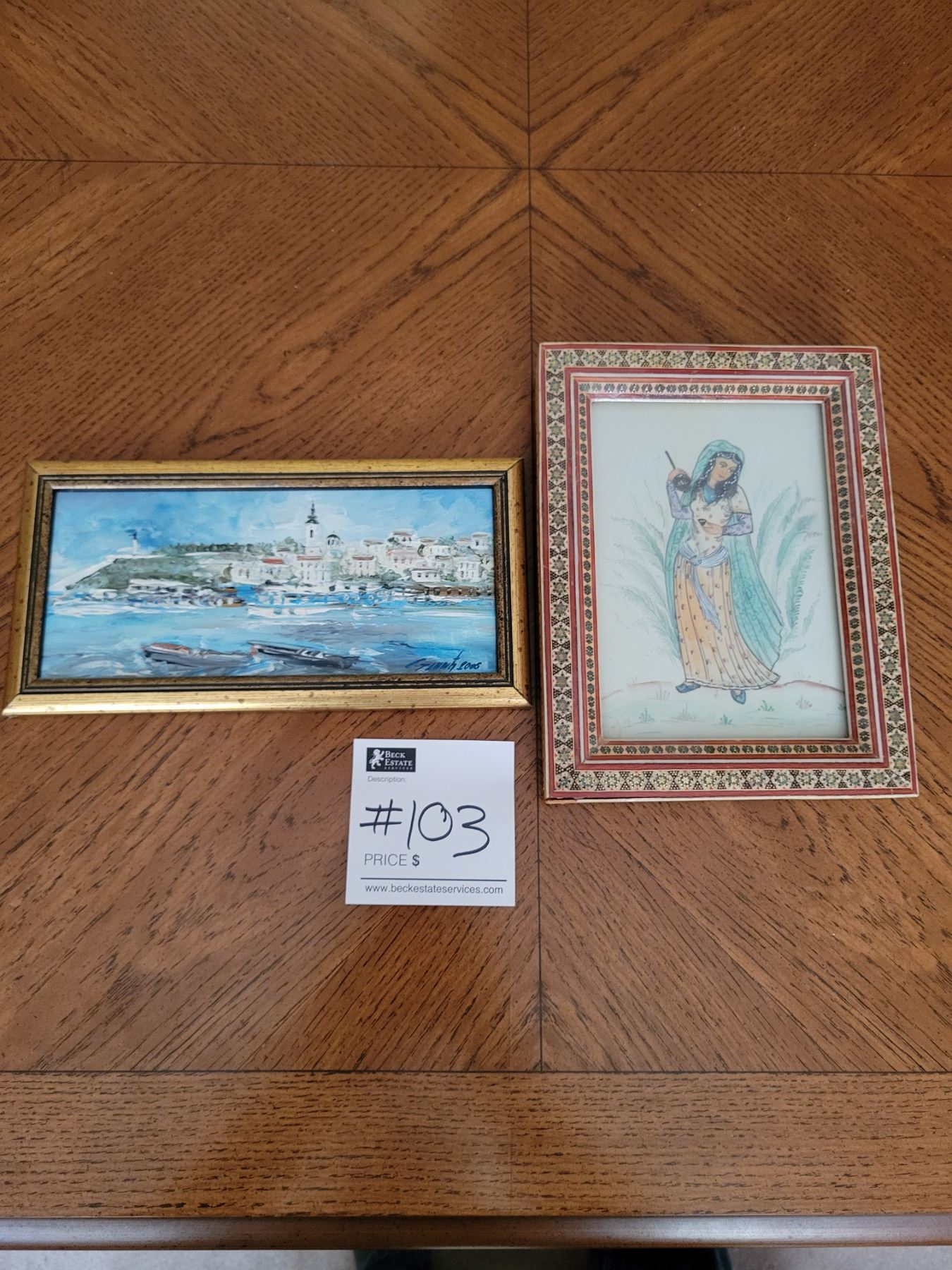 Oil Painting on Canvas Signed by Artist 5"h x 9 3/4"w - Woman Print with Inlaid Frame 9"h x 6 3/4"w